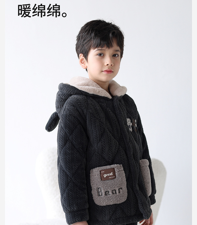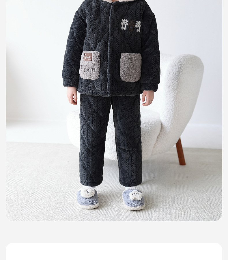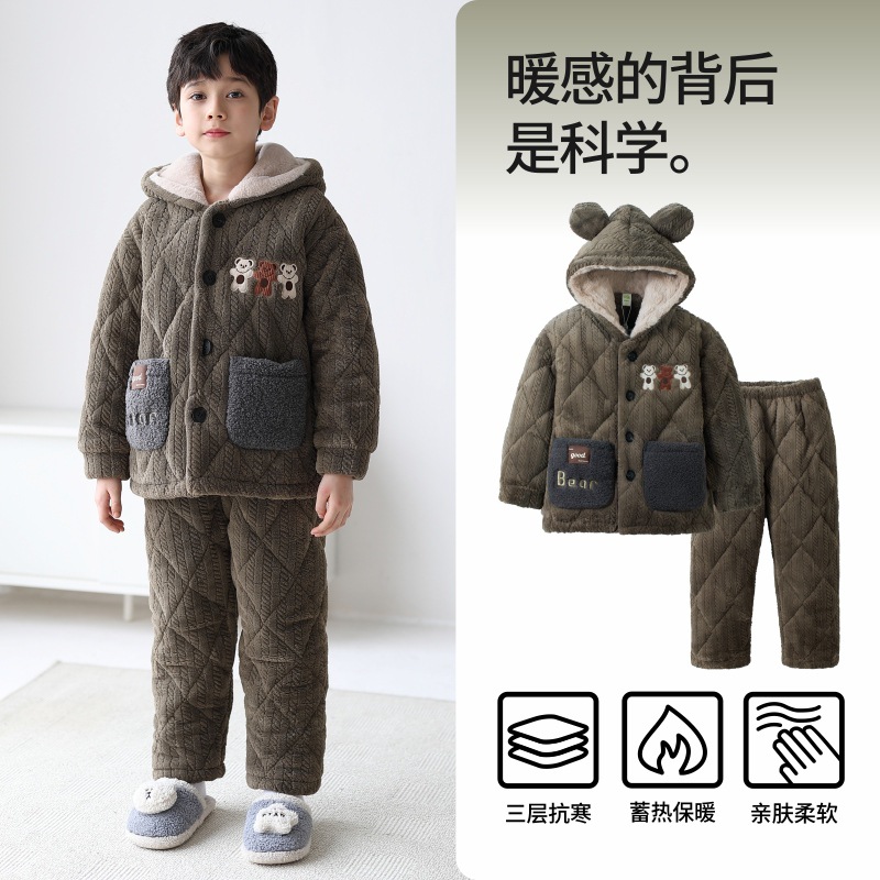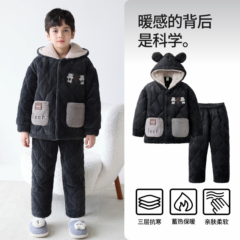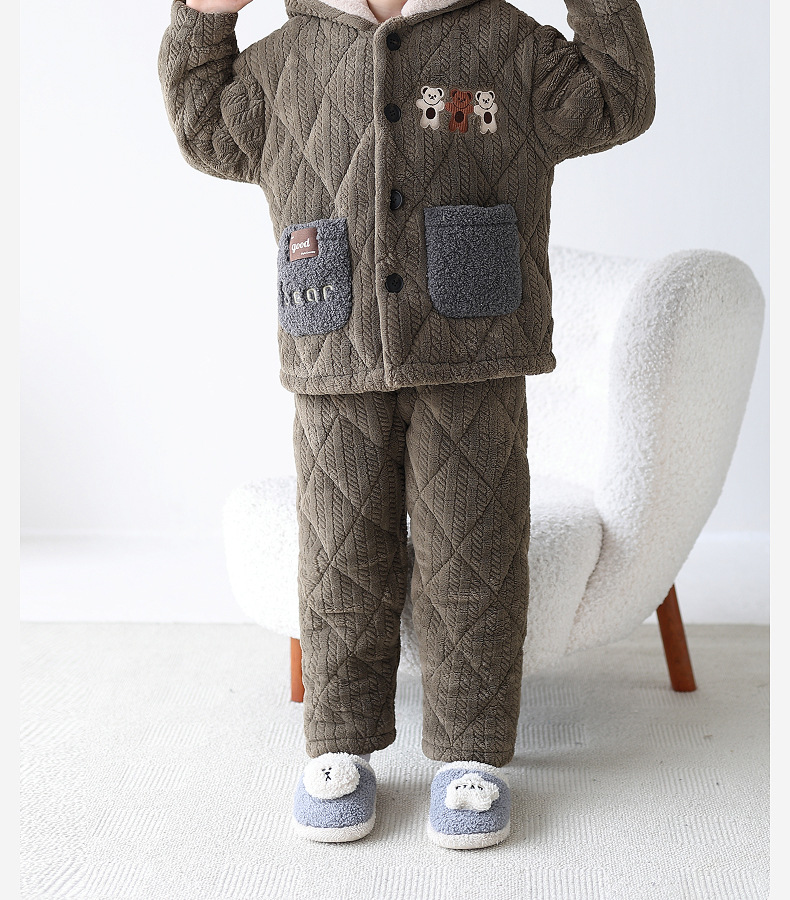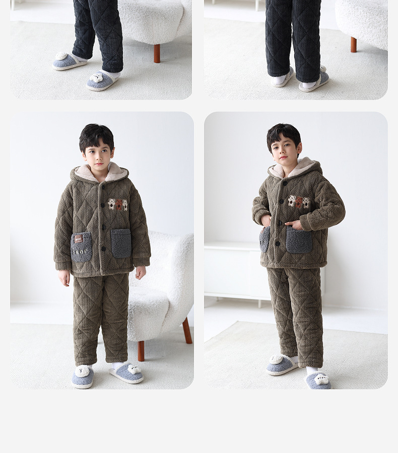 어린이 코튼 파자마 소년의 겨울 플란넬 3 층 두꺼운 2024 소년 산호 양털 홈 옷