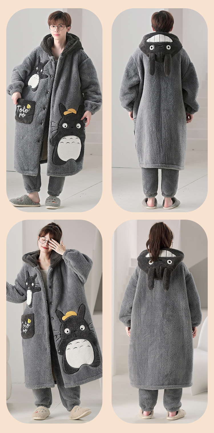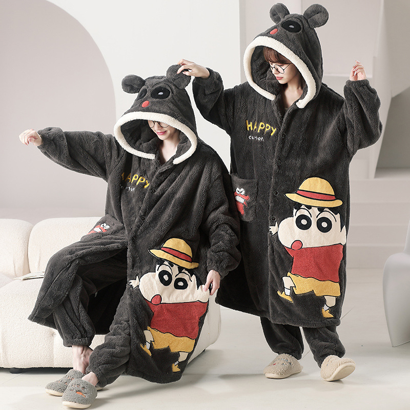 커플의 잠옷 여성의 겨울 산호 벨벳 유니섹스 두꺼운 플러스 벨벳 목욕 가운 청소년 따뜻한 파자마 홈 의류 세트