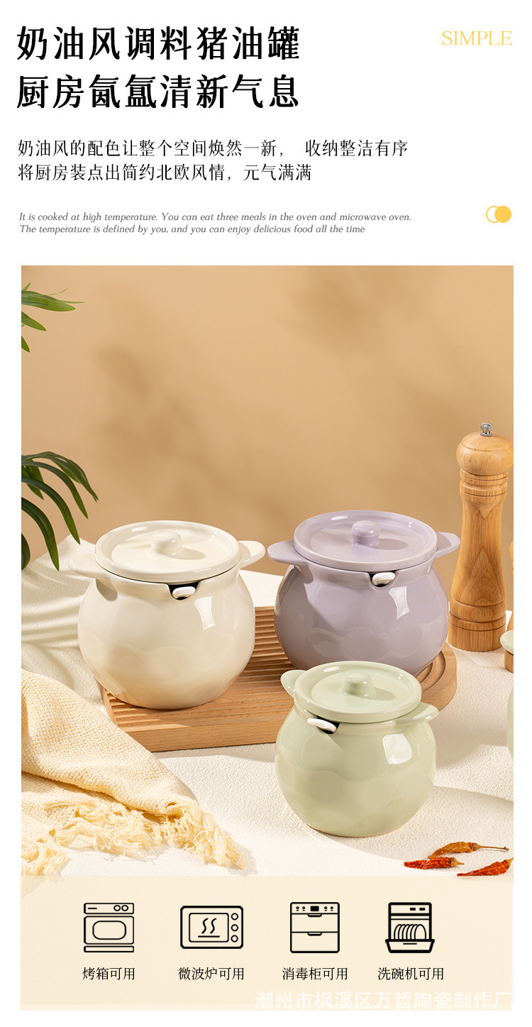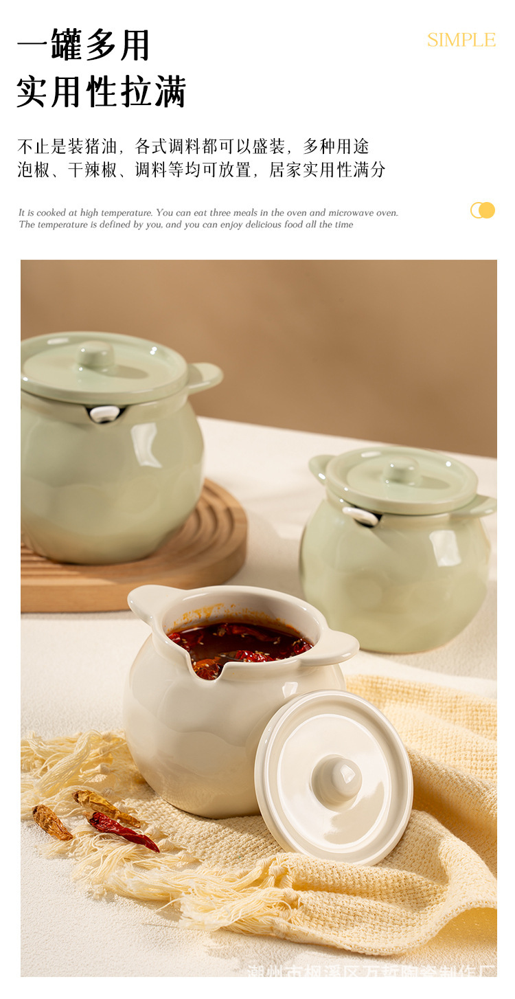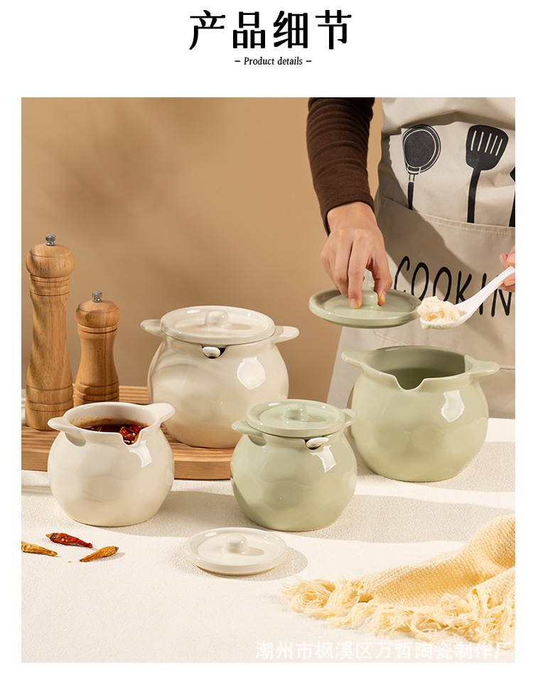 크림 스타일 세라믹 바이노럴 라드 항아리 뚜껑 가정용 고온 내성 칠리 항아리 오일 스플래시 페퍼 항아리 소금 항아리 조미료 항아리