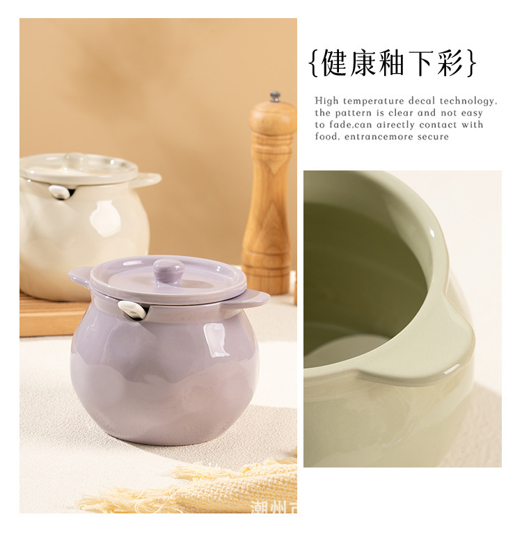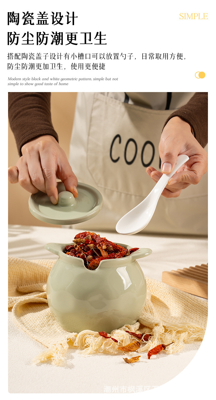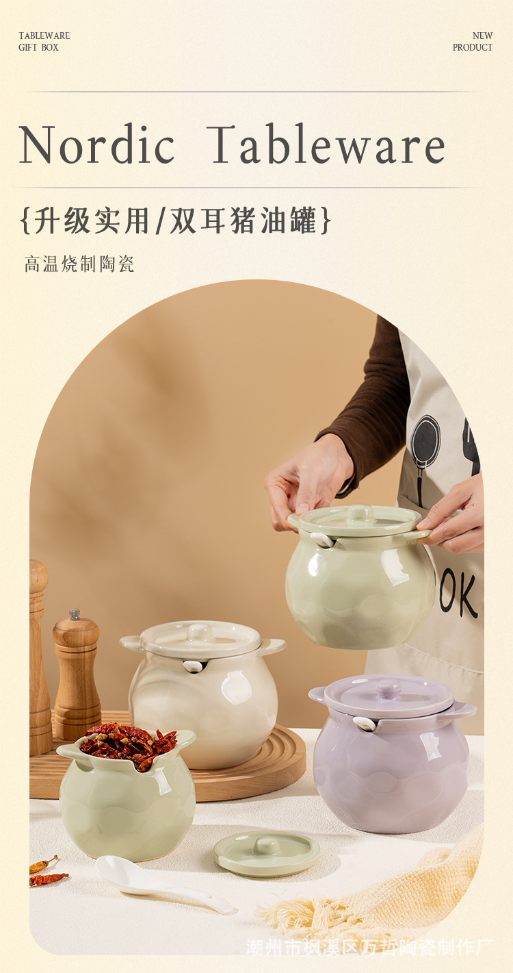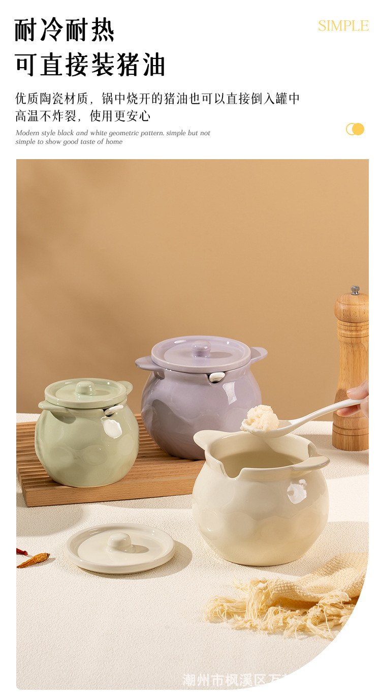 크림 스타일 세라믹 바이노럴 라드 항아리 뚜껑 가정용 고온 내성 칠리 항아리 오일 스플래시 페퍼 항아리 소금 항아리 조미료 항아리