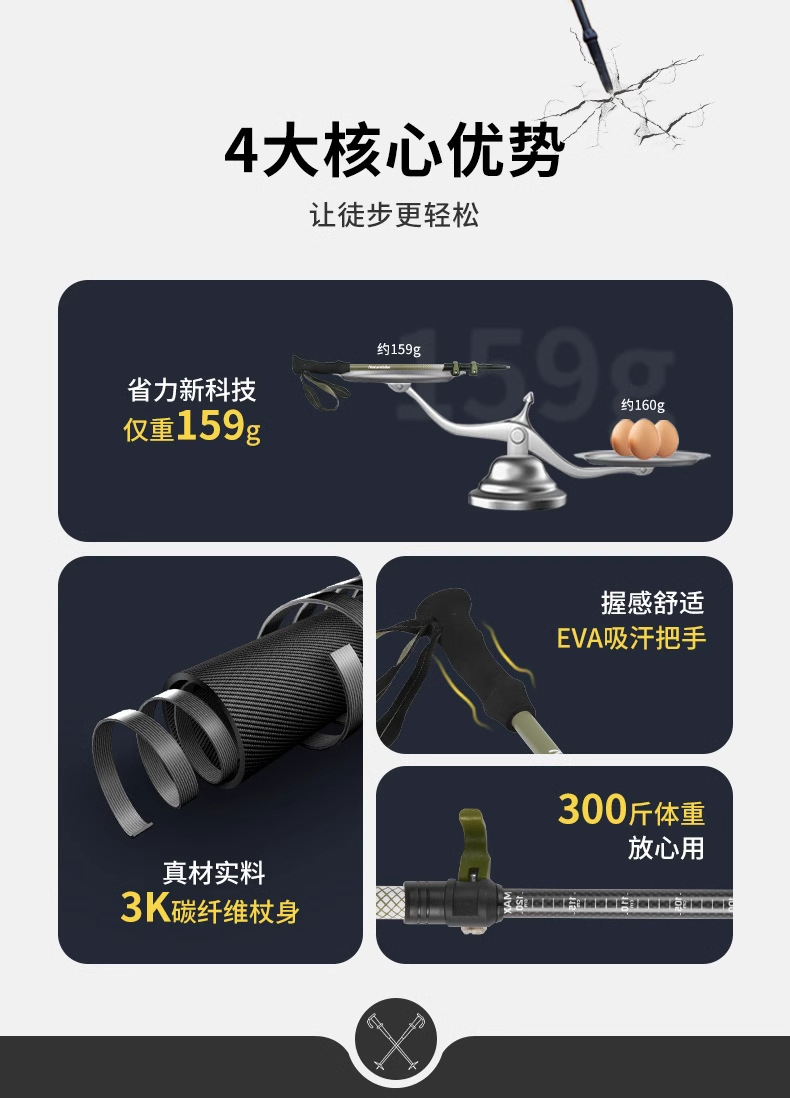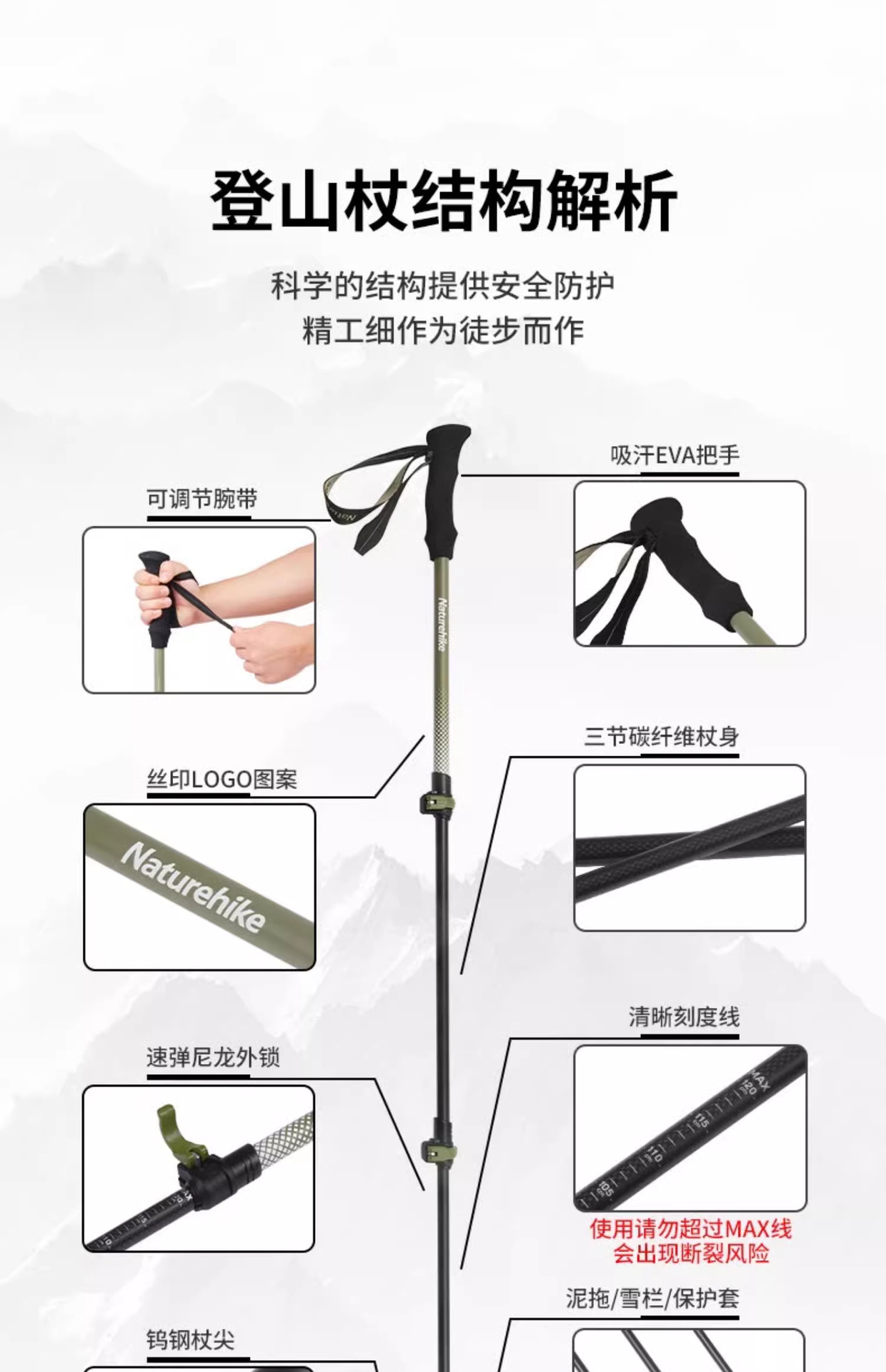 등산 스틱, 접이식 등산 지팡이, 야외용 탄소섬유 신축식 하이킹 장비, 미끄럼 방지, 가볍고 휴대 가능