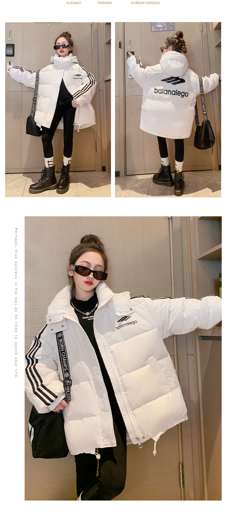 소녀 다운 재킷 새로운 국가 표준 화이트 오리 큰 아이들을위한 두꺼운 따뜻한 서양식 후드 겨울 옷 겨울 올 매치 재킷