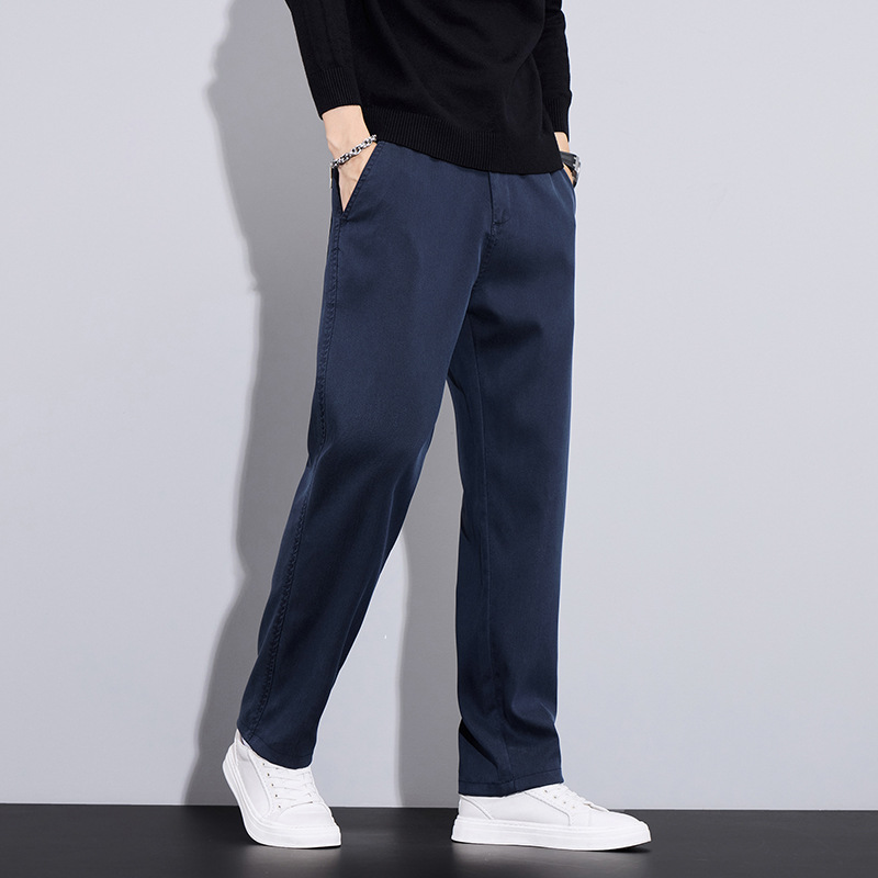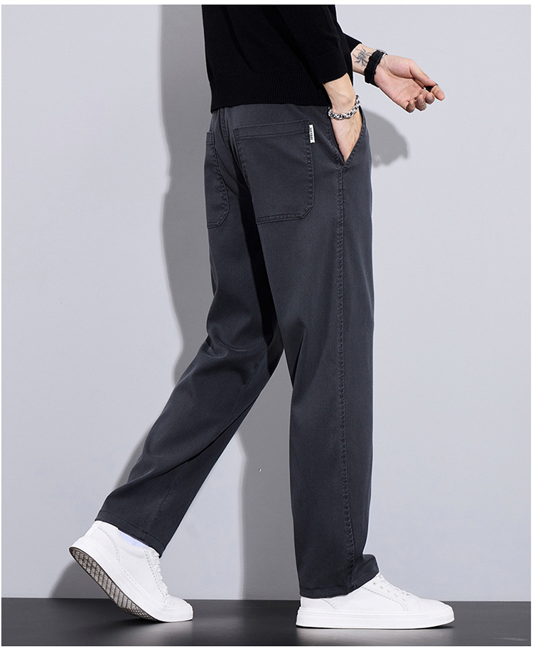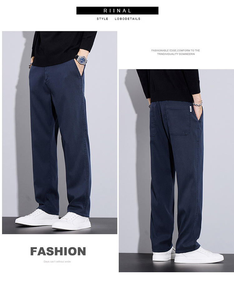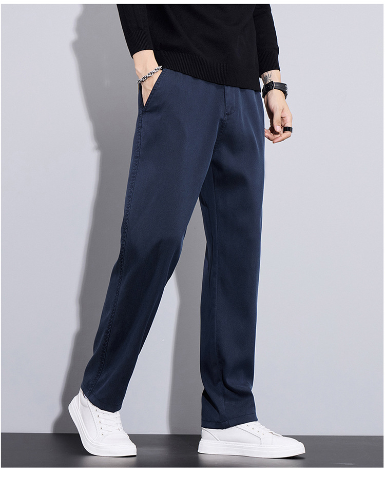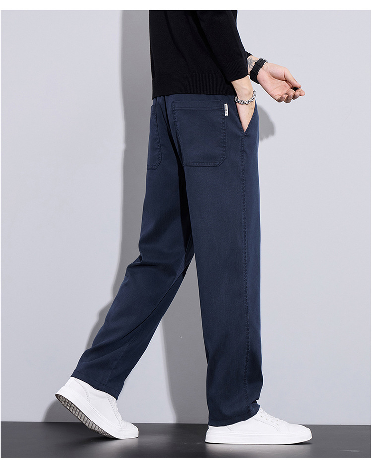 가을 겨울용 기모 텐셀 캐주얼 팬츠 남성용 루즈핏 스트레이트 롱 팬츠 남성용 신축성 비즈니스 드레이프 와이드 팬츠