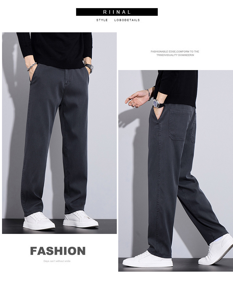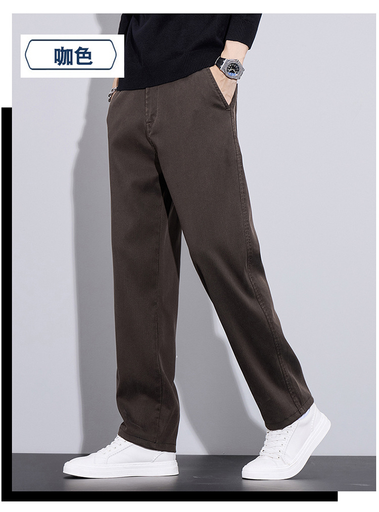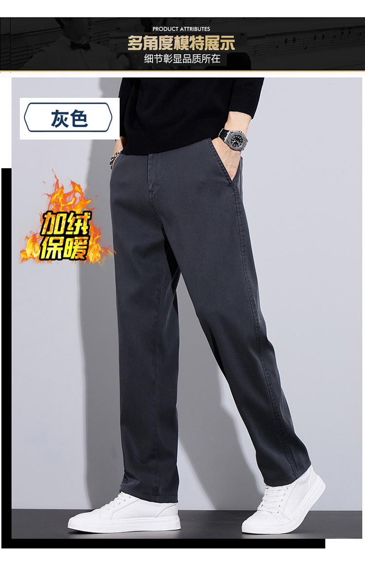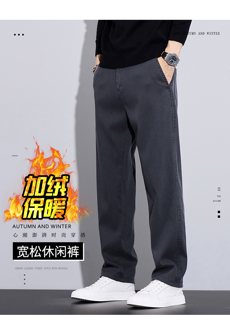 가을 겨울용 기모 텐셀 캐주얼 팬츠 남성용 루즈핏 스트레이트 롱 팬츠 남성용 신축성 비즈니스 드레이프 와이드 팬츠스토어 가기