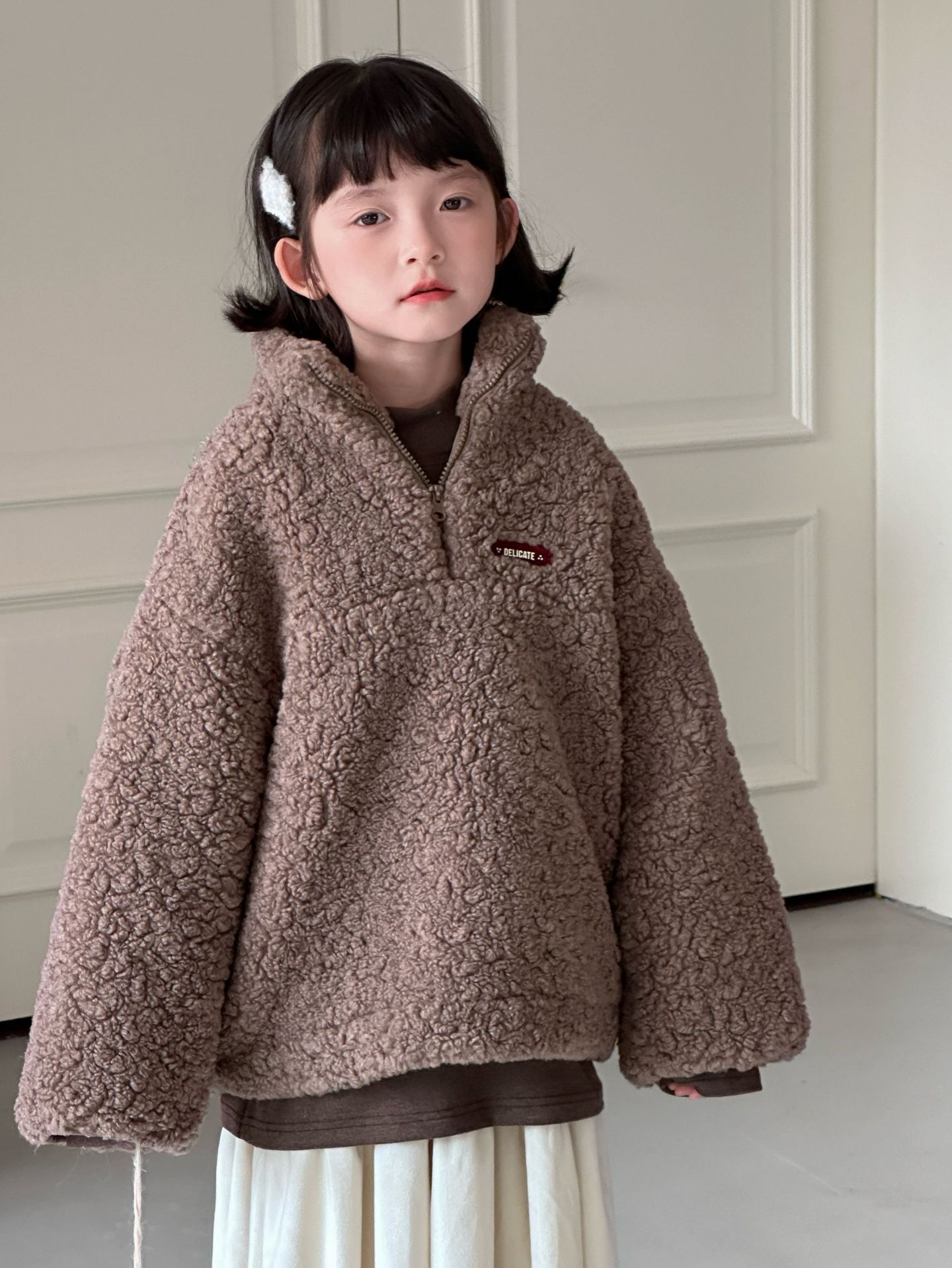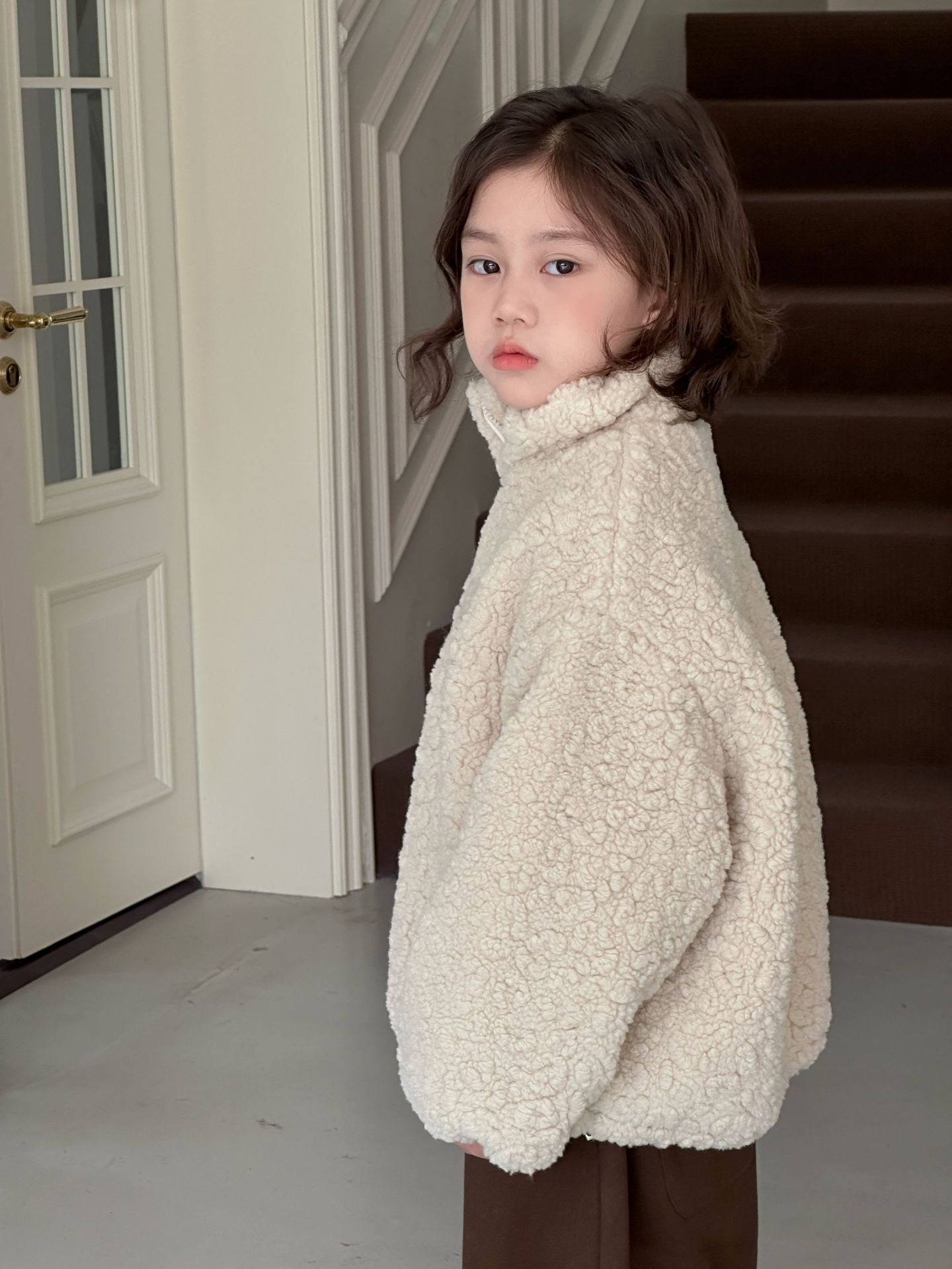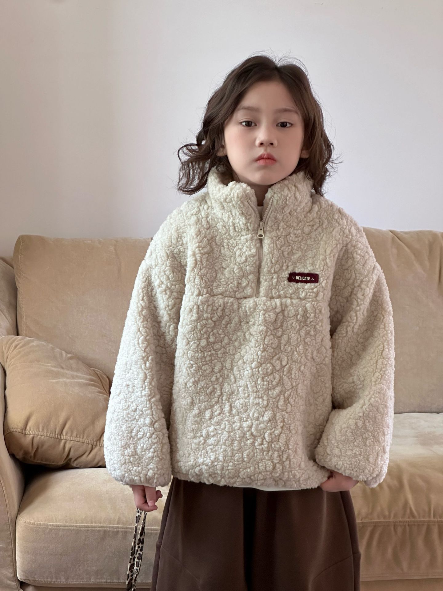 2025 겨울 신상 한국 스타일 아동용 두꺼운 양털 재킷 남녀공용 따뜻하고 편안한 스탠드 칼라 스웨트셔츠