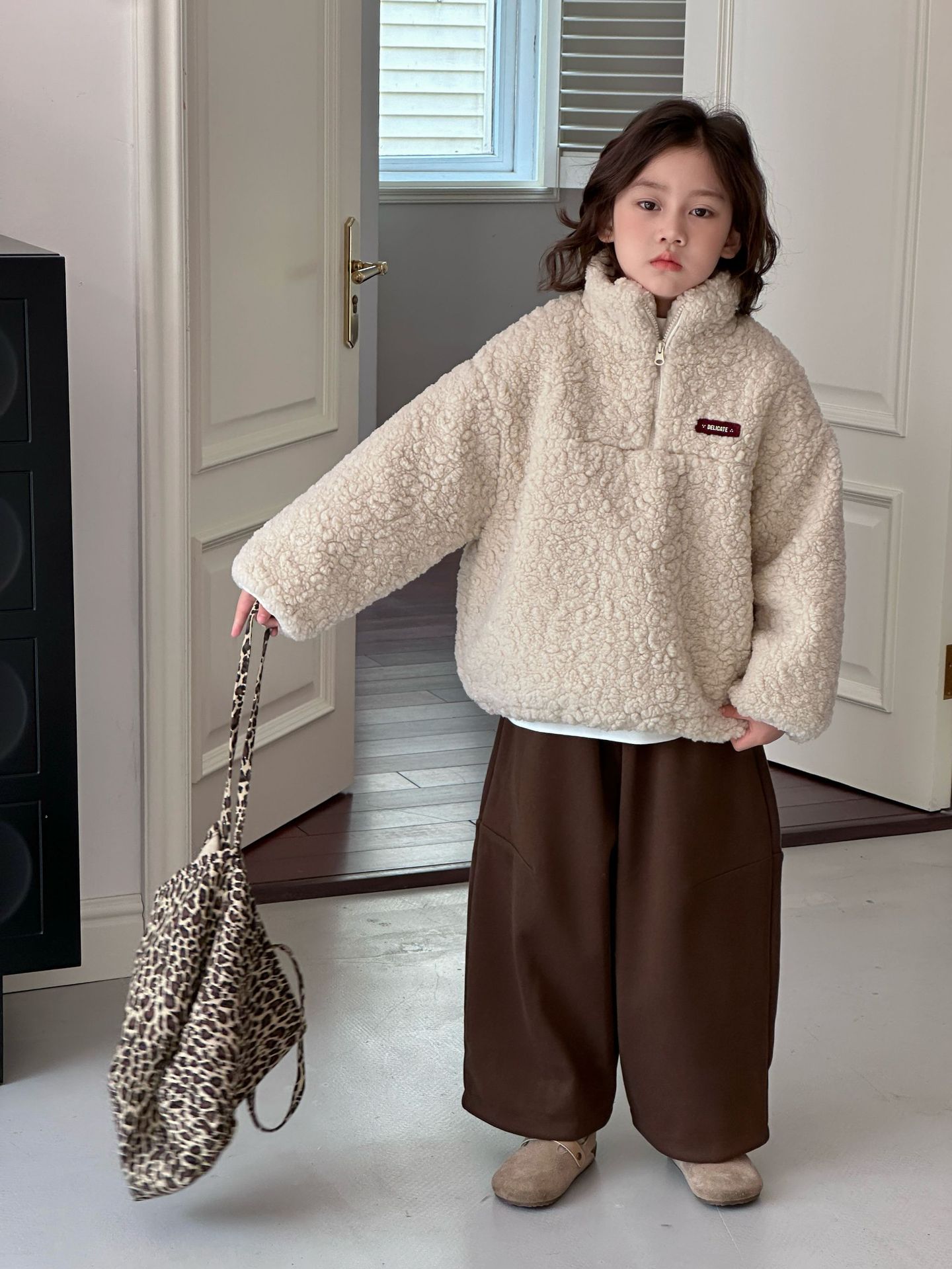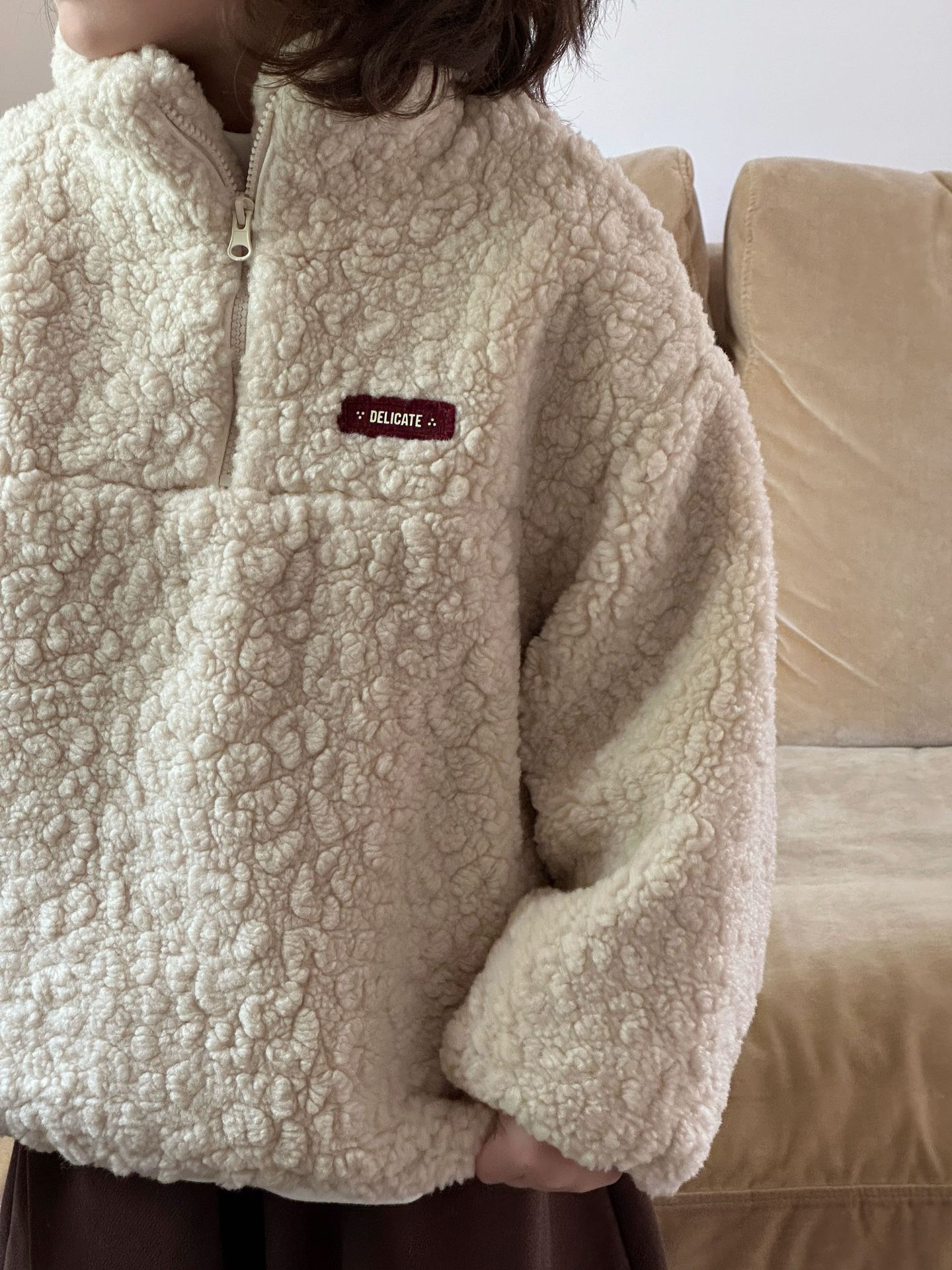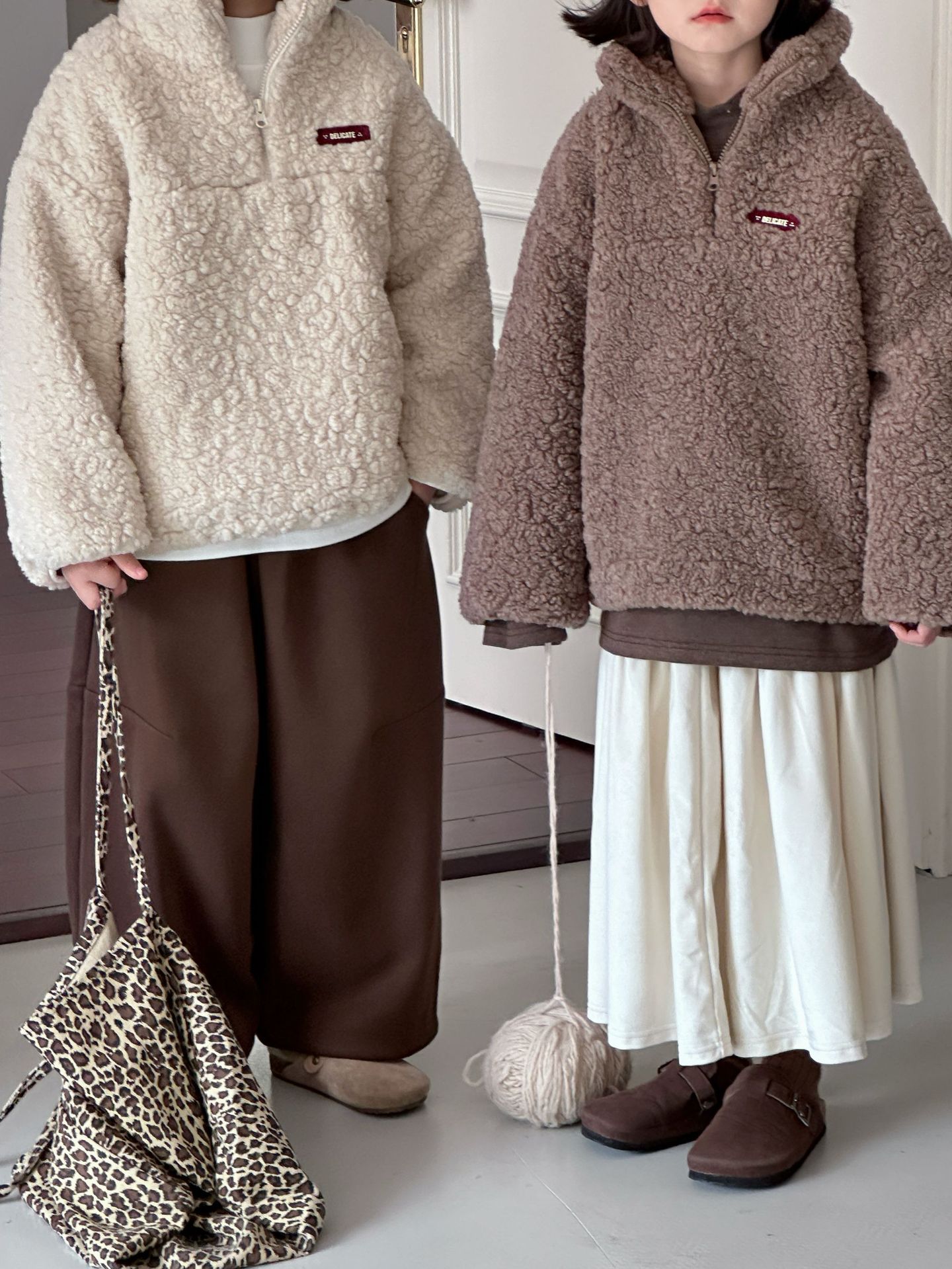 2025 겨울 신상 한국 스타일 아동용 두꺼운 양털 재킷 남녀공용 따뜻하고 편안한 스탠드 칼라 스웨트셔츠