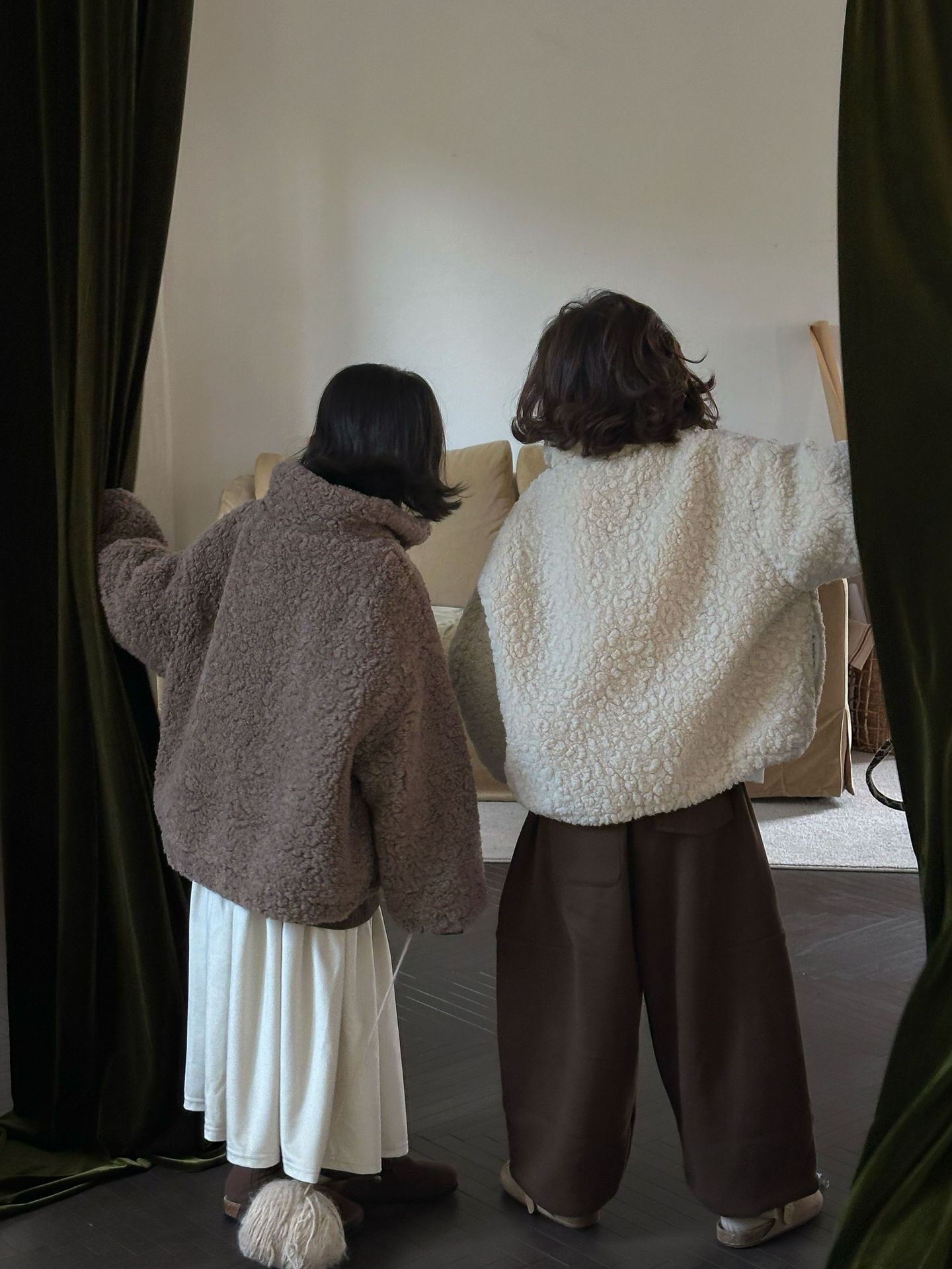 2025 겨울 신상 한국 스타일 아동용 두꺼운 양털 재킷 남녀공용 따뜻하고 편안한 스탠드 칼라 스웨트셔츠스토어 가기