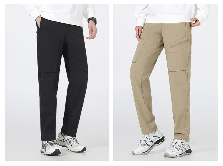 부드러운 쉘 방수 충전 바지 남성용 직선 기능성 툴링 바지 야외 기모 두꺼운 등산 바지 가을 및 겨울 바지 여성
