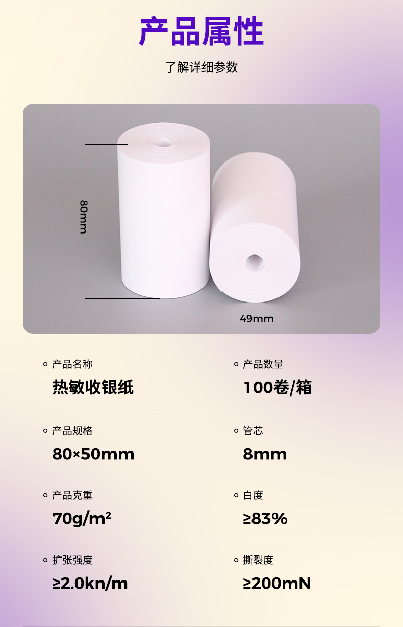 무료 열 금전 등록기 종이 80x50 호텔 프런트 데스크 인쇄 용지 8050mm meituan 테이크 아웃 영수증 인쇄