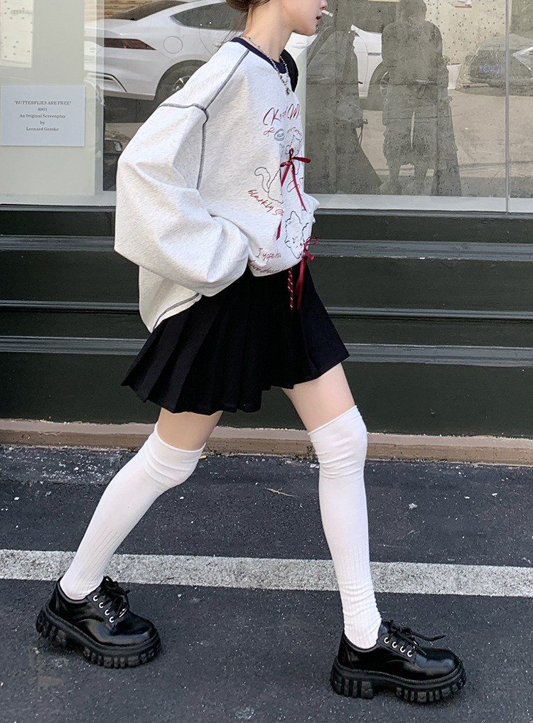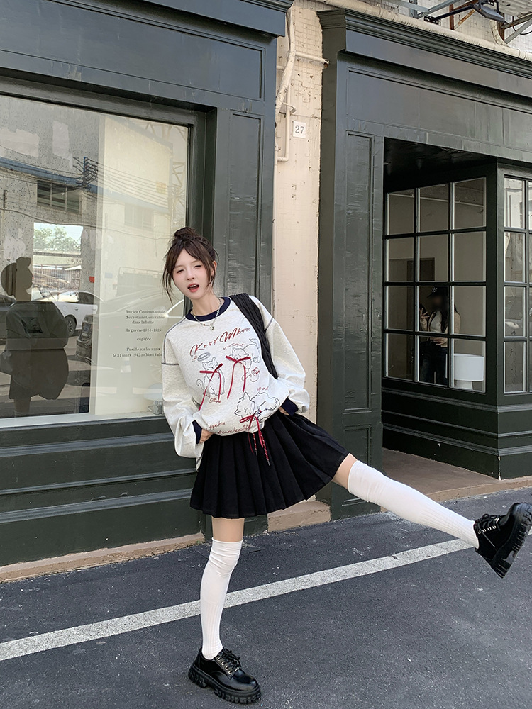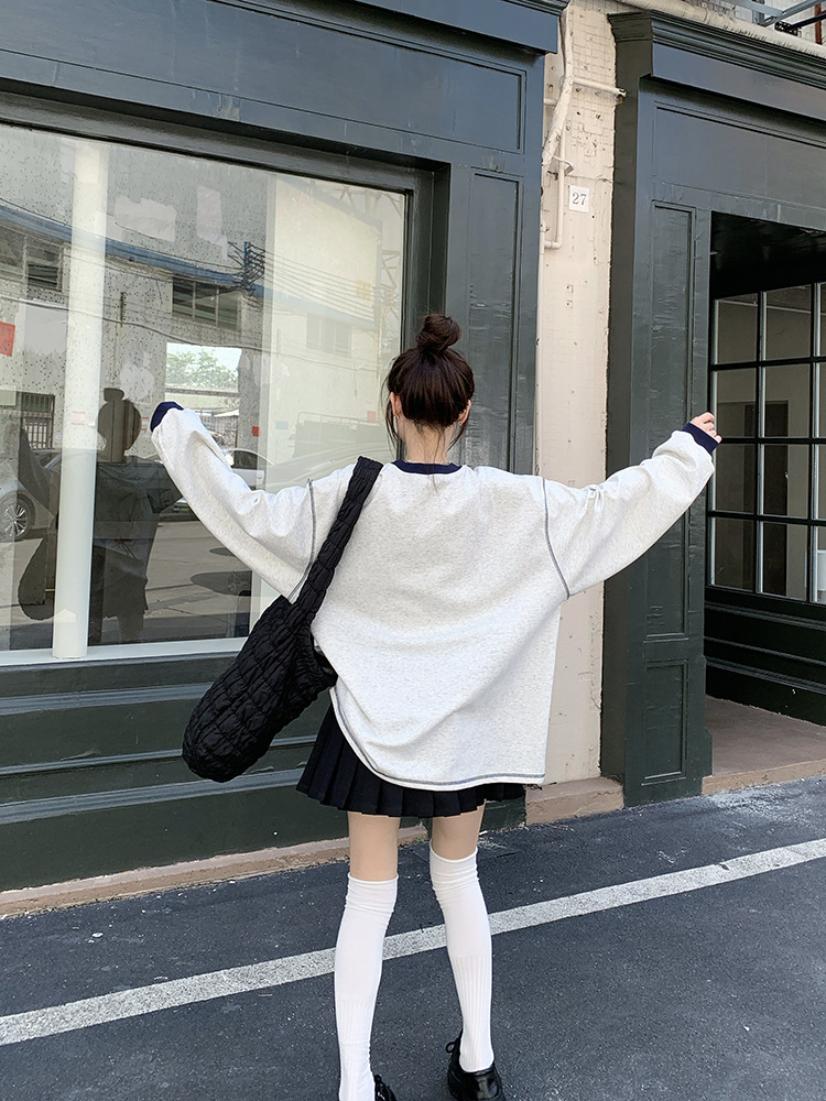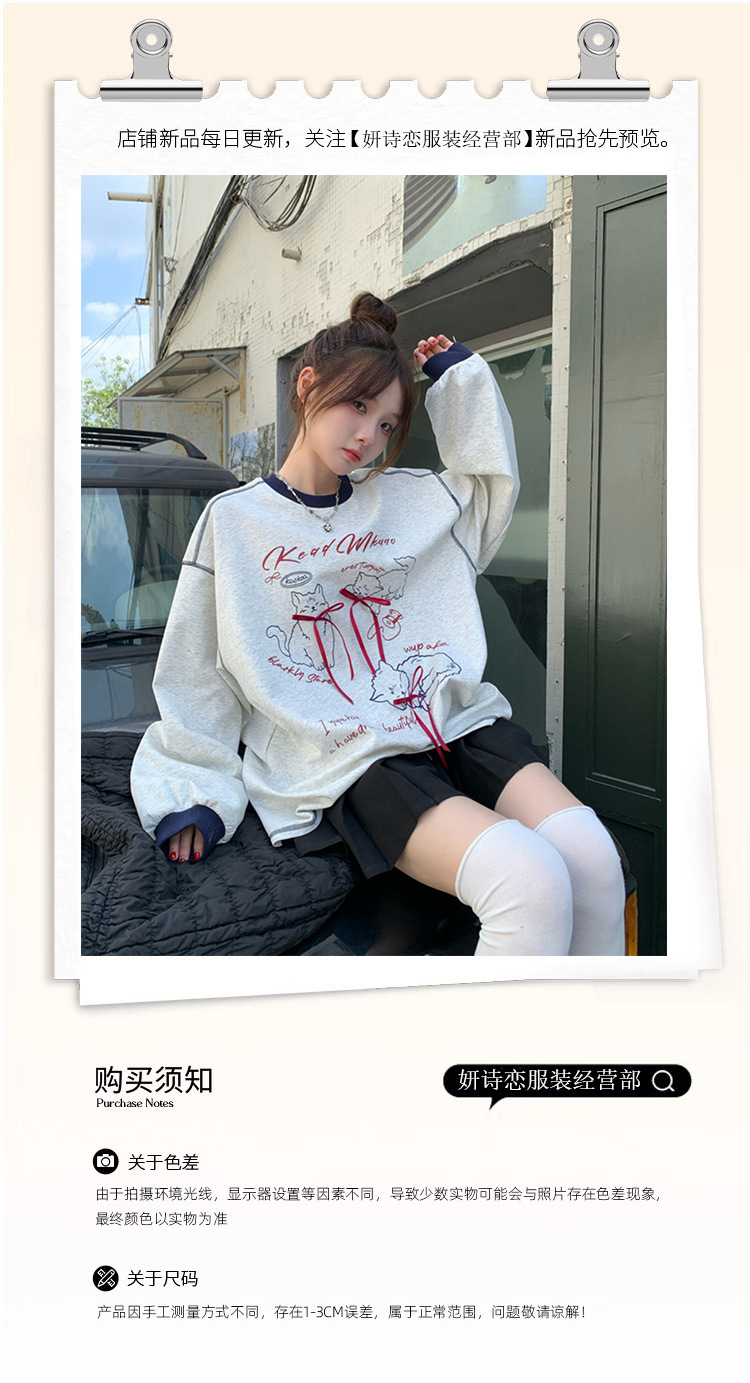 만화 고양이 인쇄 활 긴팔 스웨트 셔츠 여성의 가을 새로운 디자인 색상 대비 게으른 스타일 느슨한 탑스토어 가기