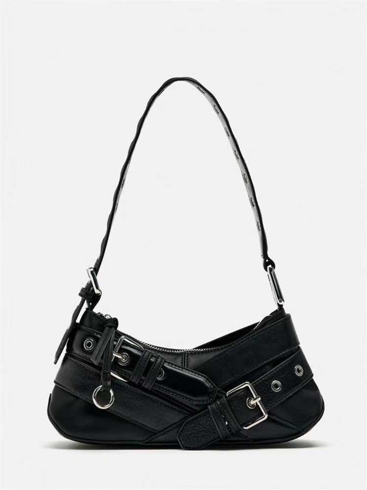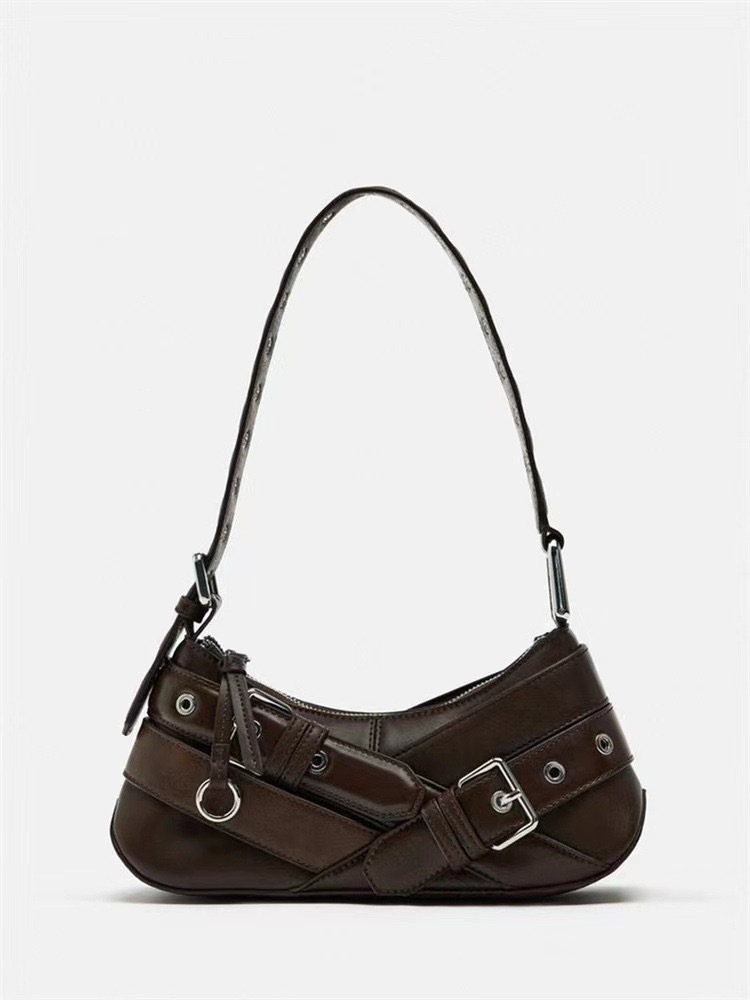 2024년 트렌디하고 멋진 레트로 블랙 고급 브라운 숄더백/크로스백, 프렌치 스타일의 여성용 배색 디자인