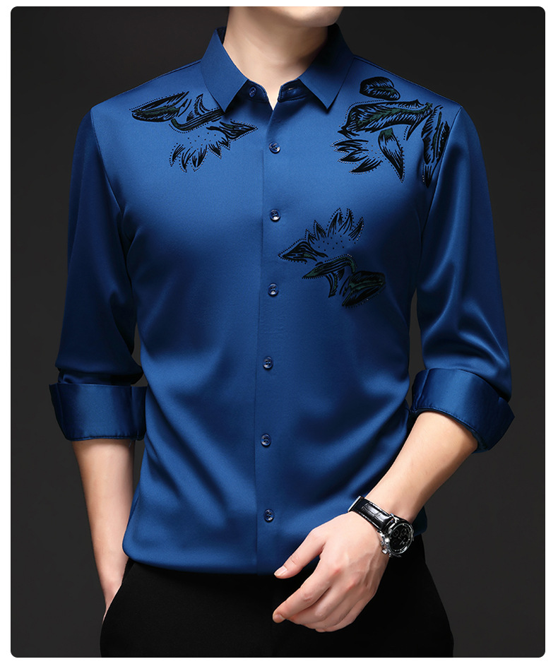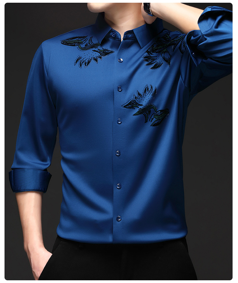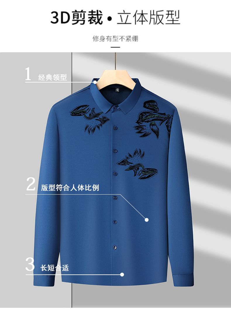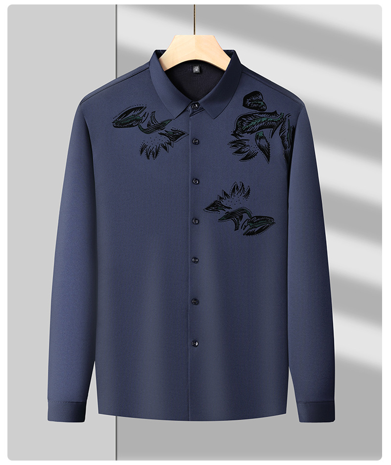 남성용 고급 원활한 핫 드릴링 꽃 그림 가을과 겨울 기모 긴 소매 젊고 중년 셔츠 비즈니스 캐주얼 아빠 셔츠스토어 가기