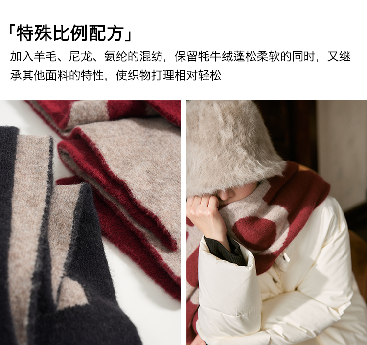 겨울 분위기 빛 럭셔리 야크 벨벳 양모 빈티지 인쇄 디자인 대비 컬러 스카프
