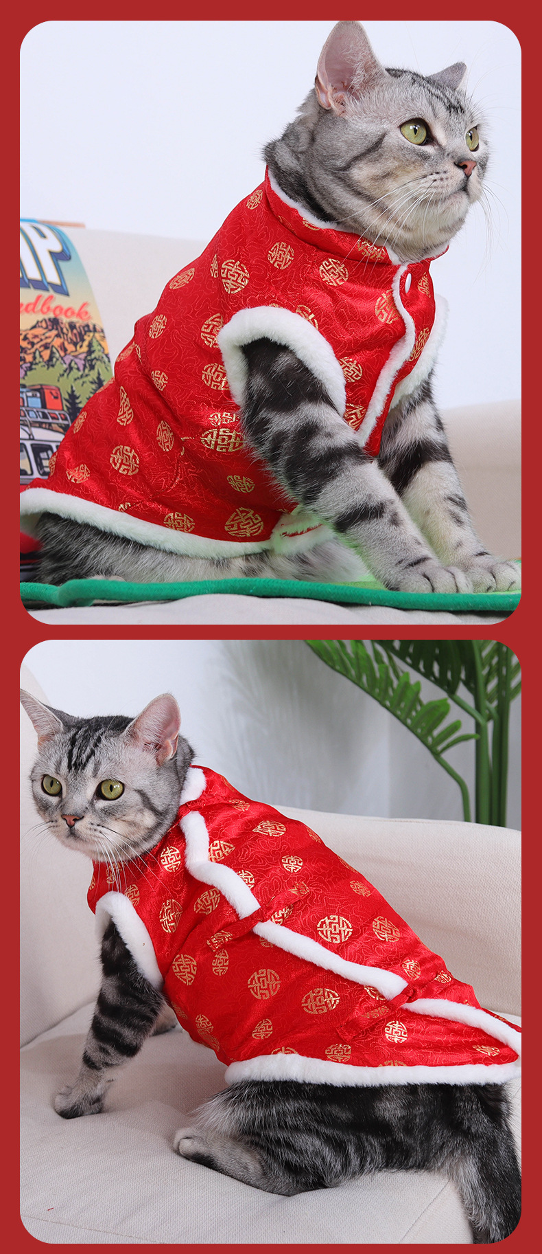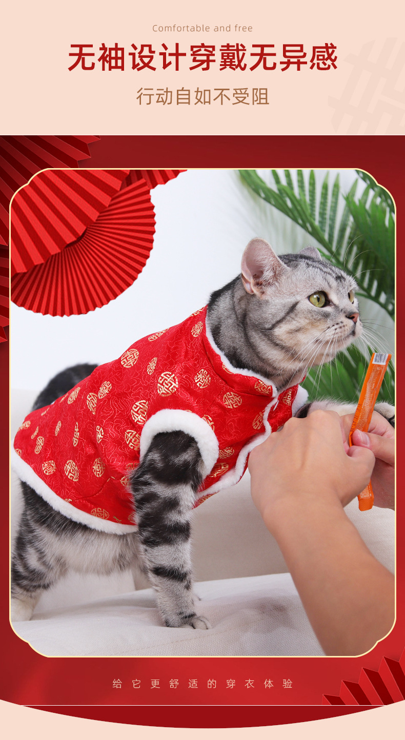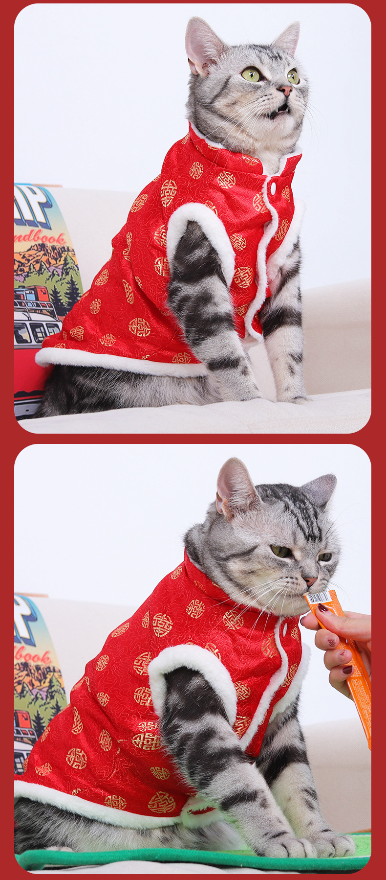 애완 동물 면 패딩 재킷 따뜻한 두꺼운 두 다리 면화 패딩 옷 새해 축제 기모 애완 동물 옷 새해 고양이와 개 새 옷스토어 가기