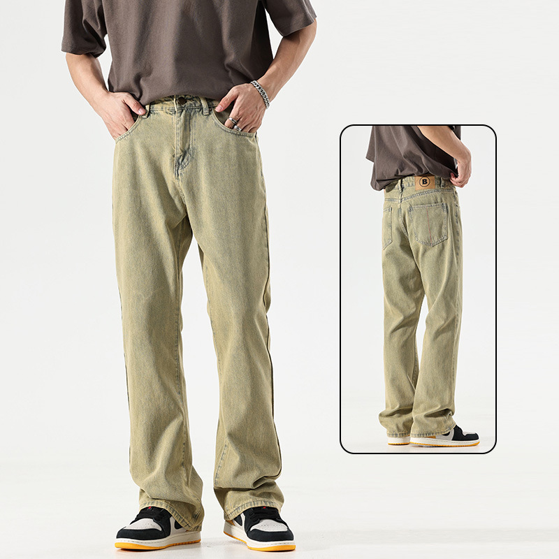 레트로 디스트레스드 워싱 청바지 남성 겨울 미국 하이 스트리트 루즈한 바닥 길이 바지 트렌디 브랜드 대형 벨벳 바지
