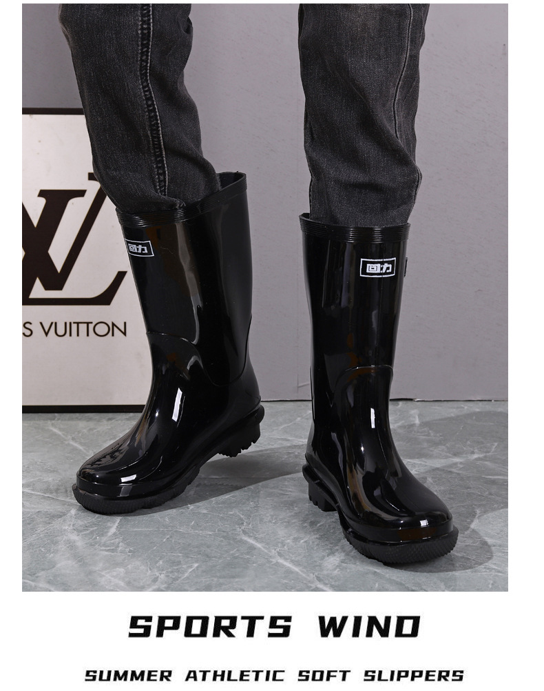 새로운 889 Huili 비 신발 남성용 방수 미끄럼 방지 따뜻한 광산 부츠 높은 장화 남성용 두꺼운 바닥 물 신발스토어 가기
