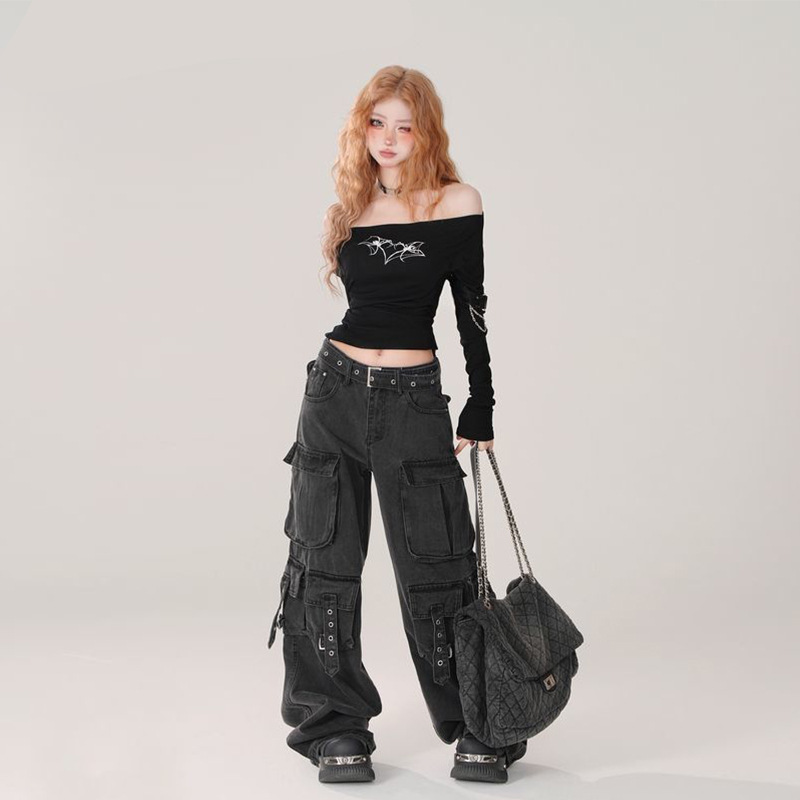 2025 여름 아메리칸 레트로 데님 워싱 워크웨어 청바지 여성 스트리트 디자인 스트레이트 루즈 와이드 팬츠스토어 가기