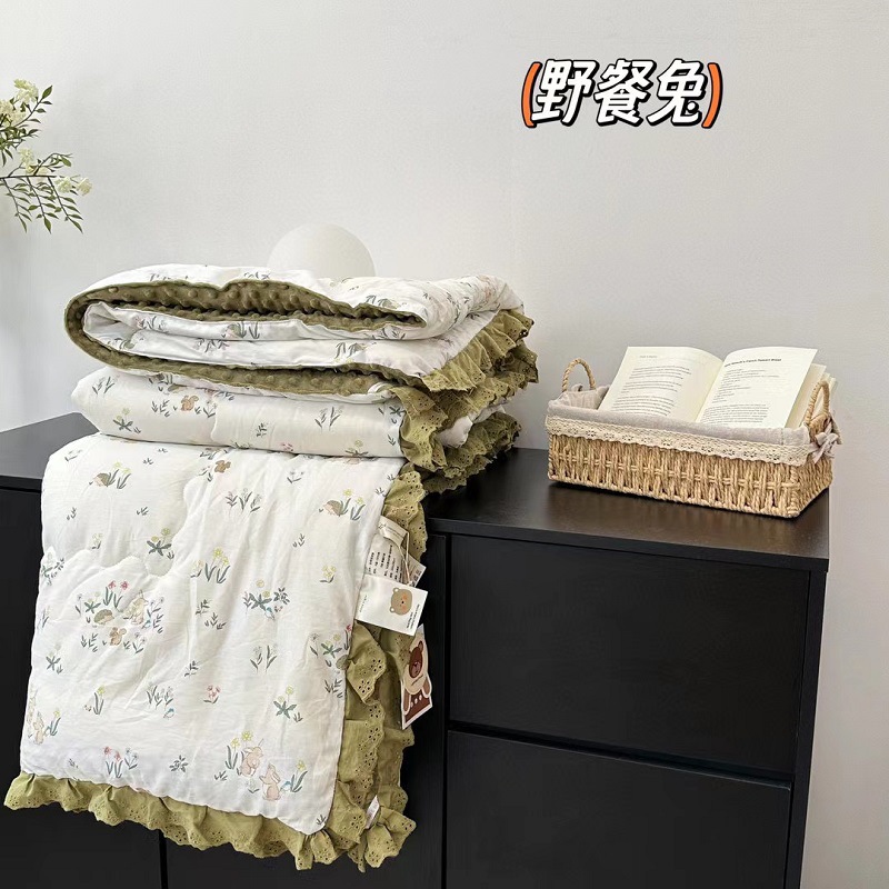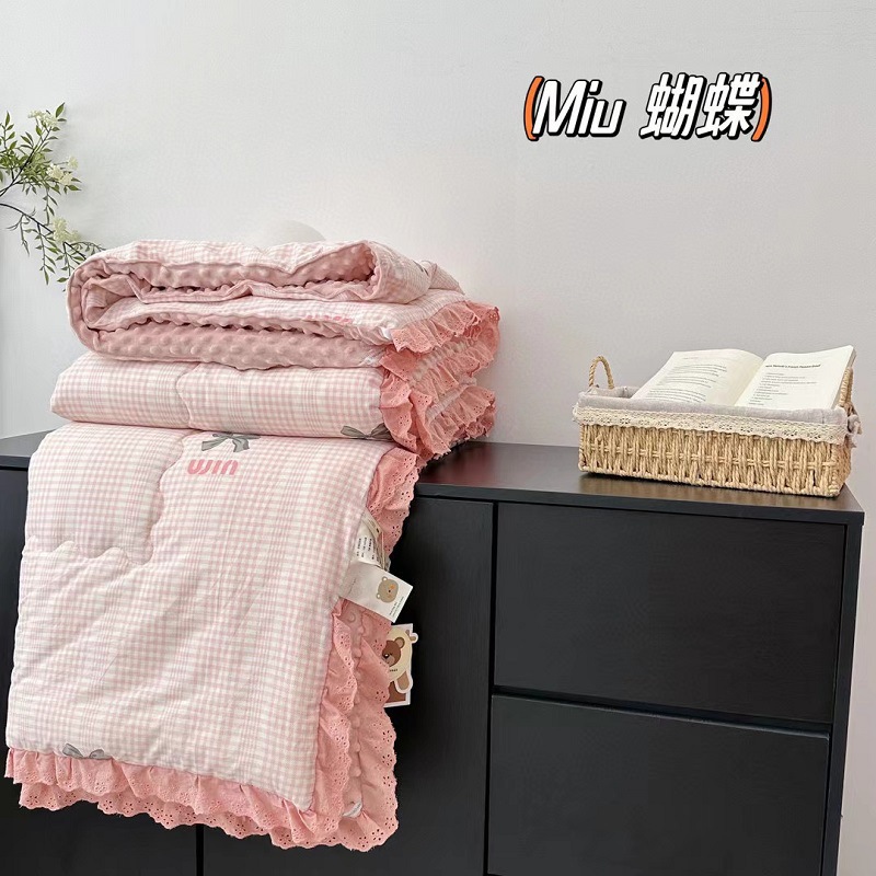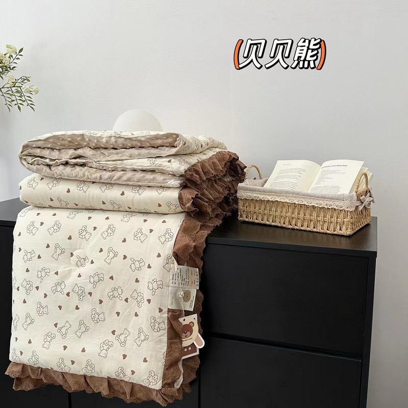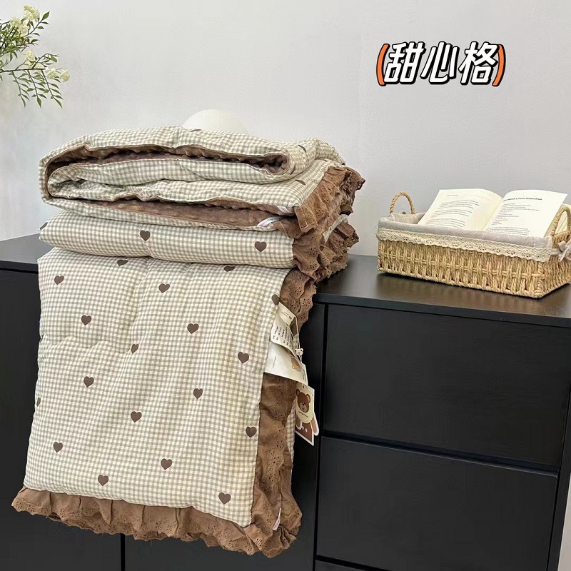 가을과 겨울 새로운 프랑스 스타일 레이스 원사이드 코튼 원사이드 벨벳 콩 섬유 이불 기계 세탁기 더블 콩 이불