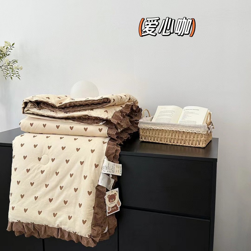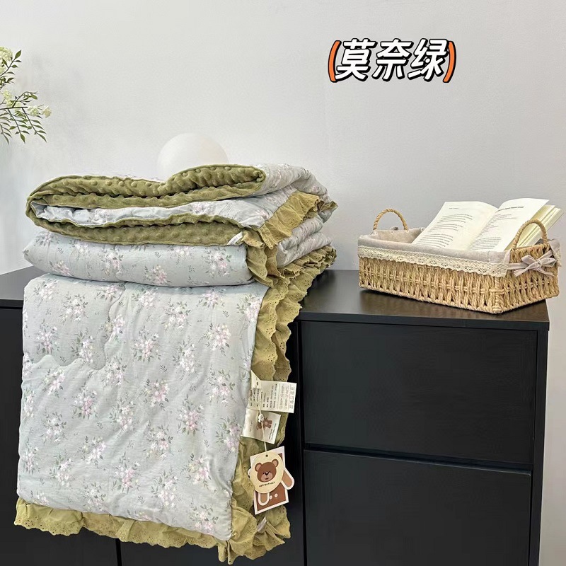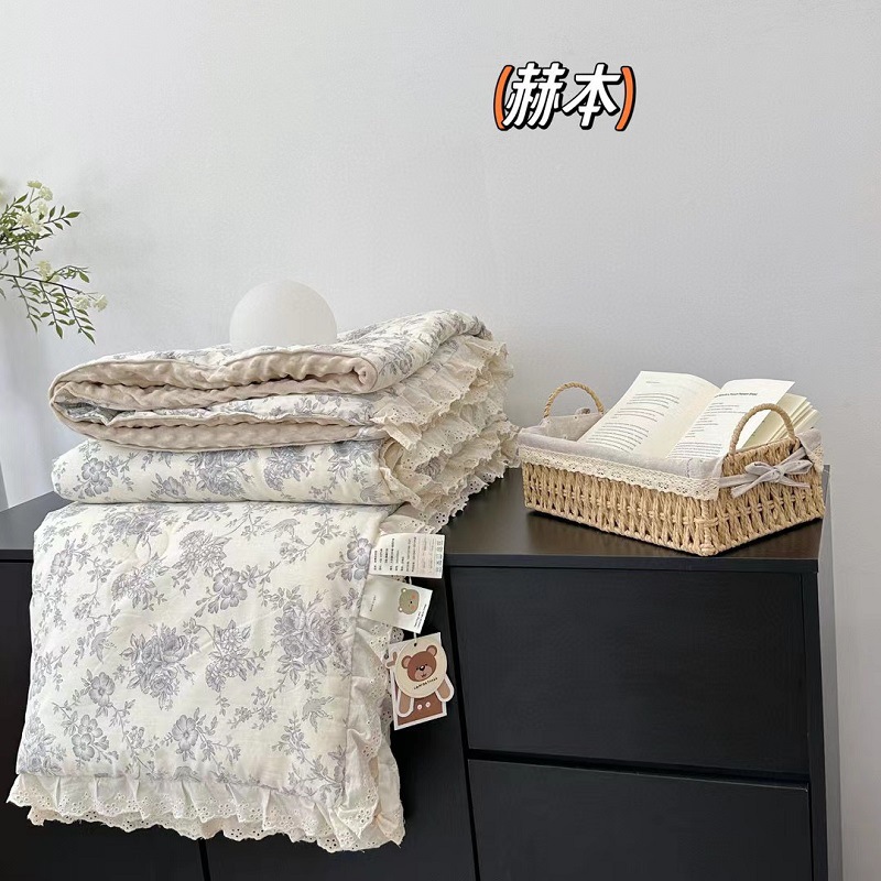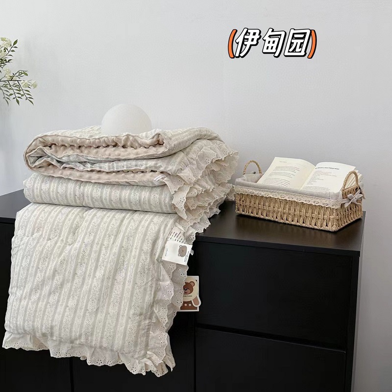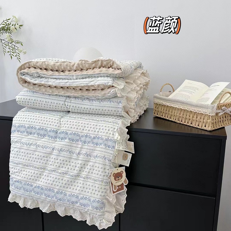 가을과 겨울 새로운 프랑스 스타일 레이스 원사이드 코튼 원사이드 벨벳 콩 섬유 이불 기계 세탁기 더블 콩 이불스토어 가기