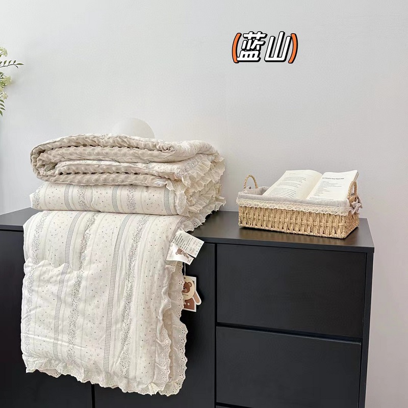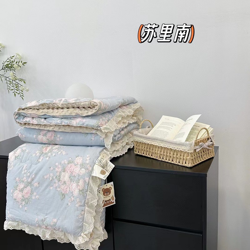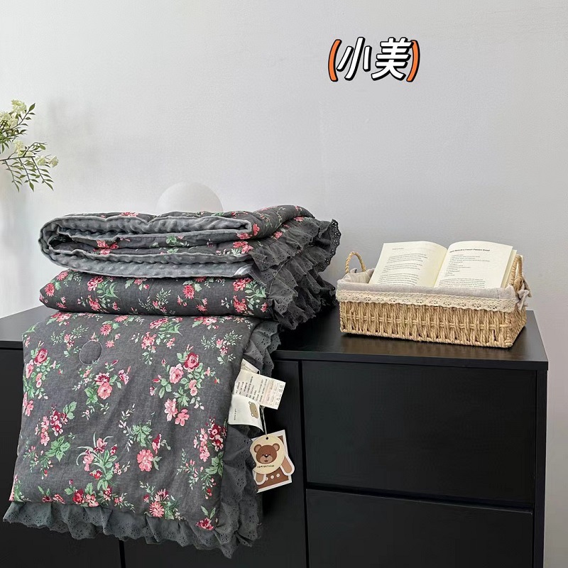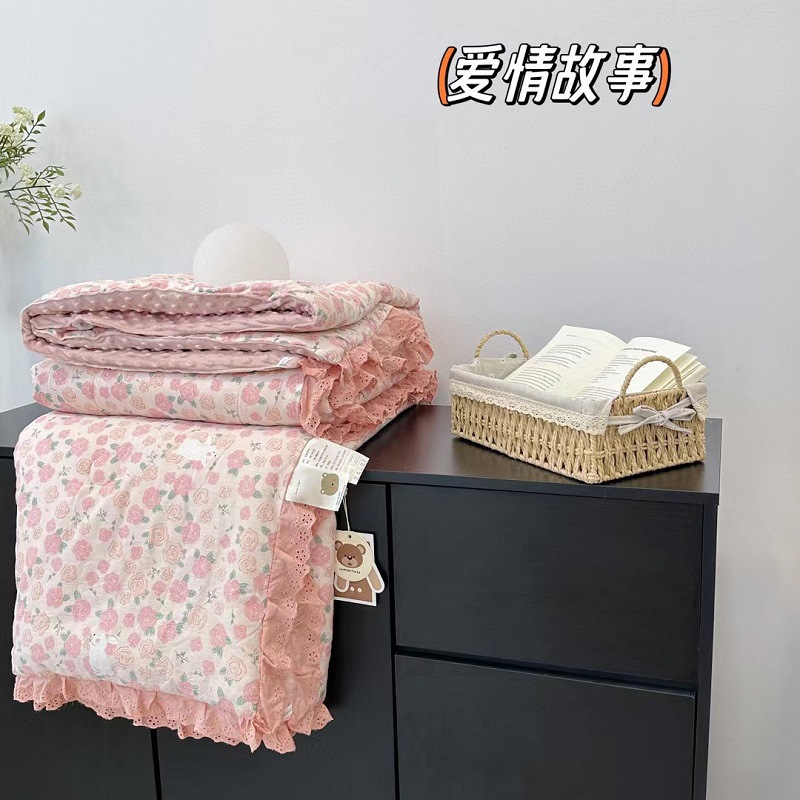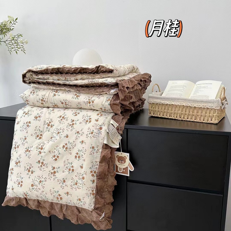 가을과 겨울 새로운 프랑스 스타일 레이스 원사이드 코튼 원사이드 벨벳 콩 섬유 이불 기계 세탁기 더블 콩 이불스토어 가기