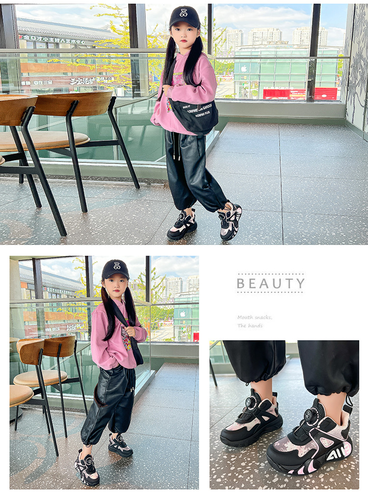 소녀 신발 2025 봄과 가을 새로운 어린이 달리기 농구 신발 어린 소녀를위한 대형 어린이 가죽 방수 운동화스토어 가기
