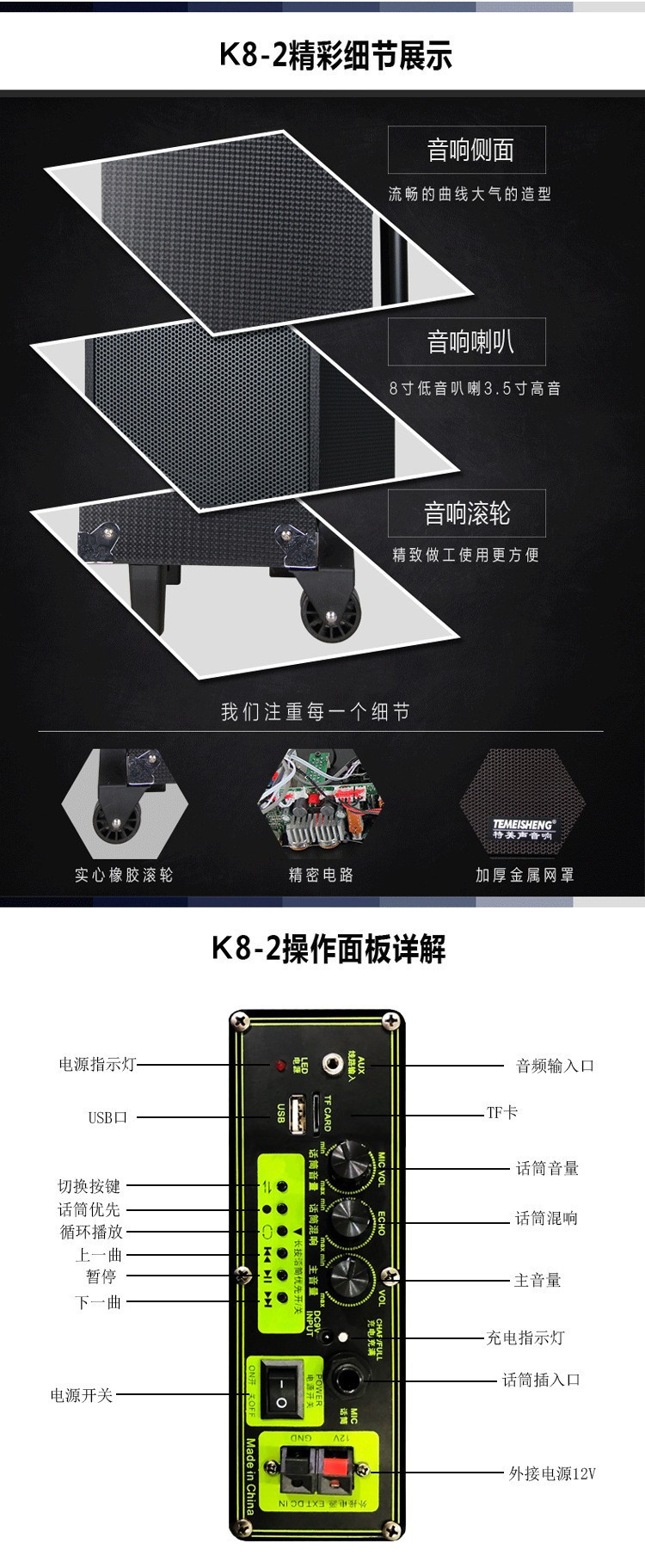 특별한 미국 음성 붉은 태양 K8-2T 야외 오디오 리튬 배터리 사각형 댄스 휴대용 풀로드 도어 오디오 외부 12v 전원 공급 장치