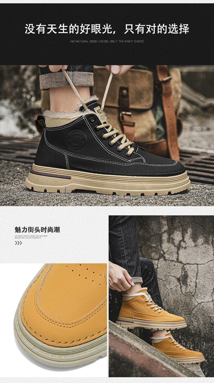 겨울 기모 마틴 부츠 남성용 트렌디 올매치 하이 탑 툴링 슈즈 두꺼운 코튼 패딩 슈즈 두꺼운 캐주얼 쇼트 부츠
