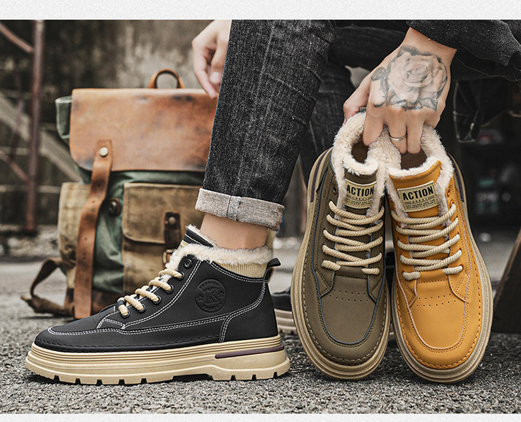 겨울 기모 마틴 부츠 남성용 트렌디 올매치 하이 탑 툴링 슈즈 두꺼운 코튼 패딩 슈즈 두꺼운 캐주얼 쇼트 부츠스토어 가기