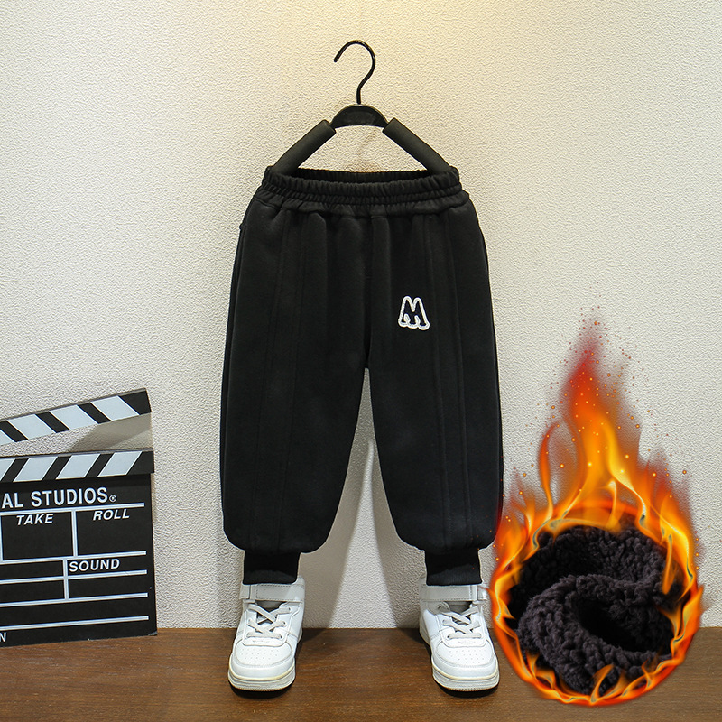 소년의 발 바인딩 운동복 기모 어린이 한국식 겨울 느슨한 스포츠 바지 소년 아기를위한 새로운 유행 캐주얼 바지스토어 가기