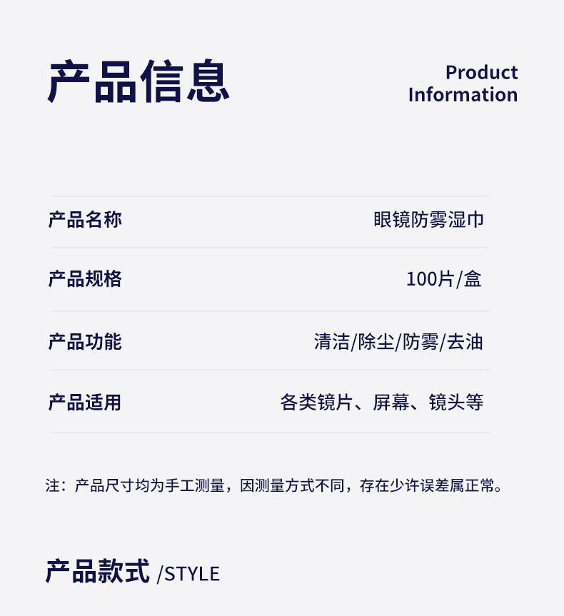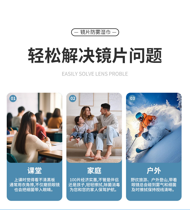 • 렌즈 김서림 방지 물티슈(100개) 6*12cm 상자