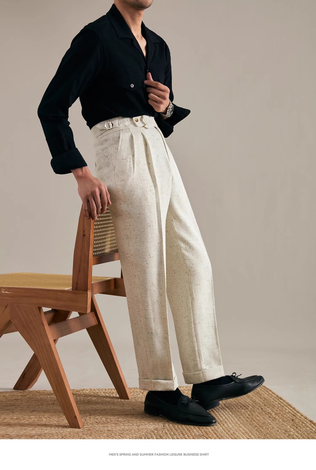 세트 바지 남자의 봄과 가을 2024 새로운 복고풍 느슨한 직선 캐주얼 긴 바지