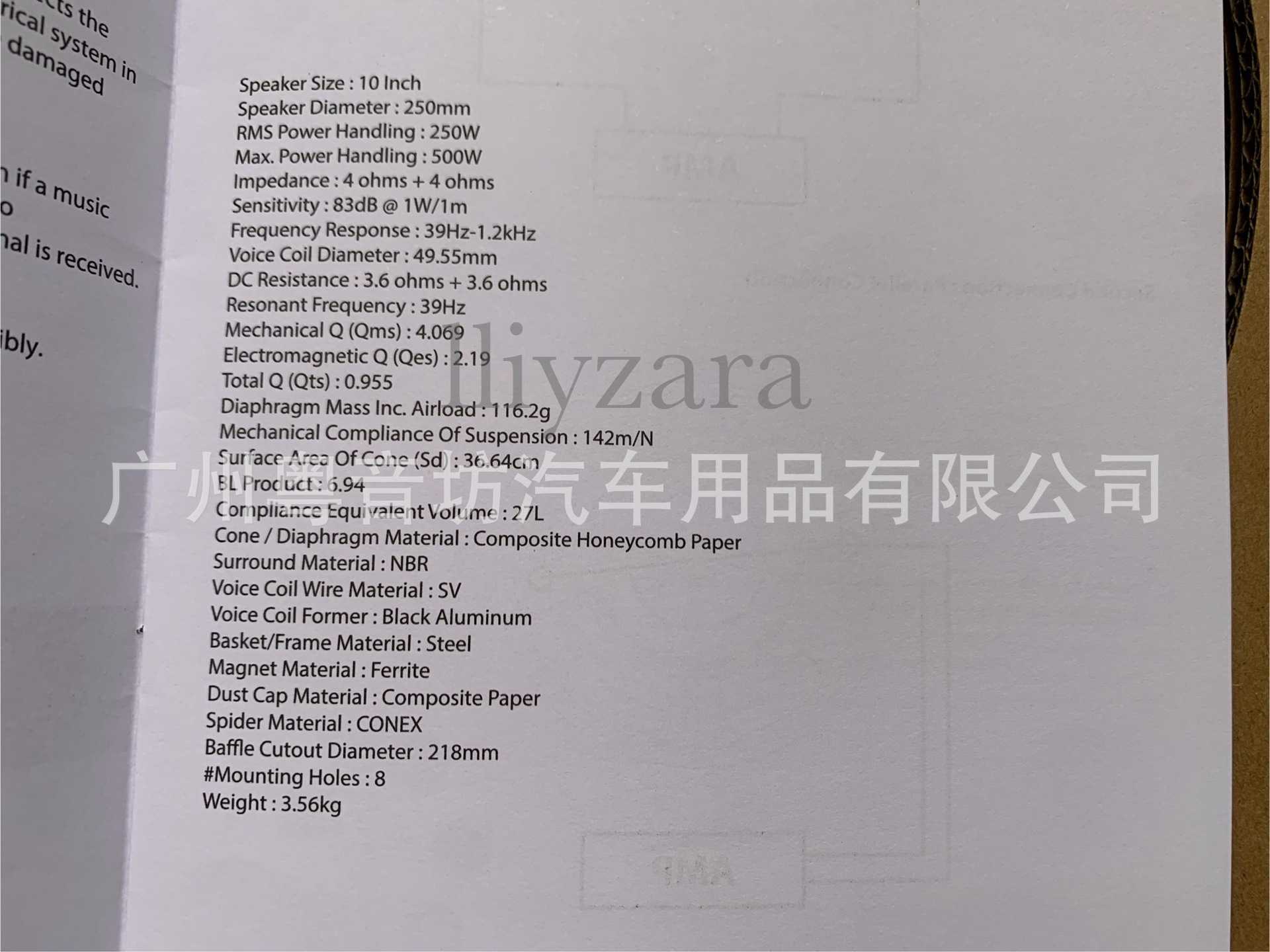 독일 블루 보물 자동차 오디오 GTW 21004 D 자동차 10 인치 수동 서브 우퍼 서브 우퍼