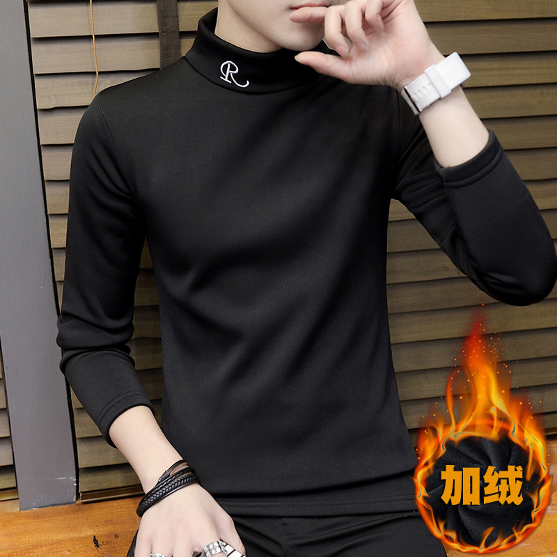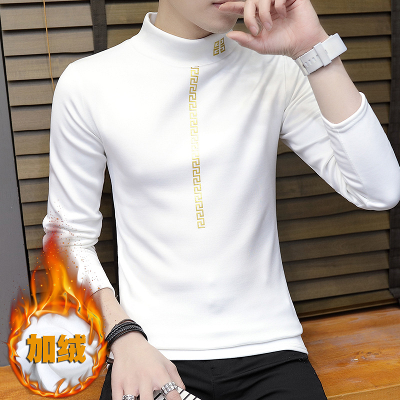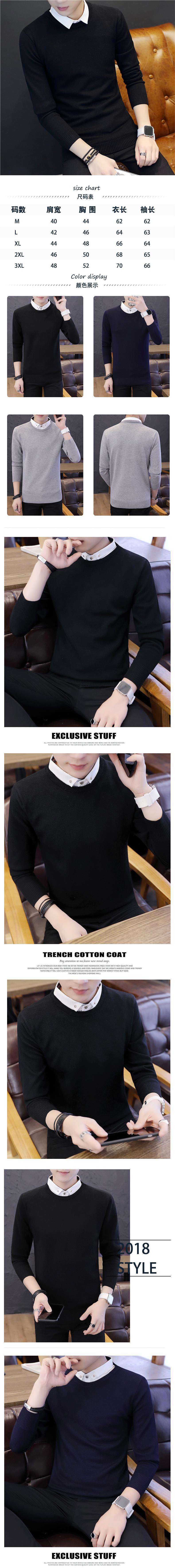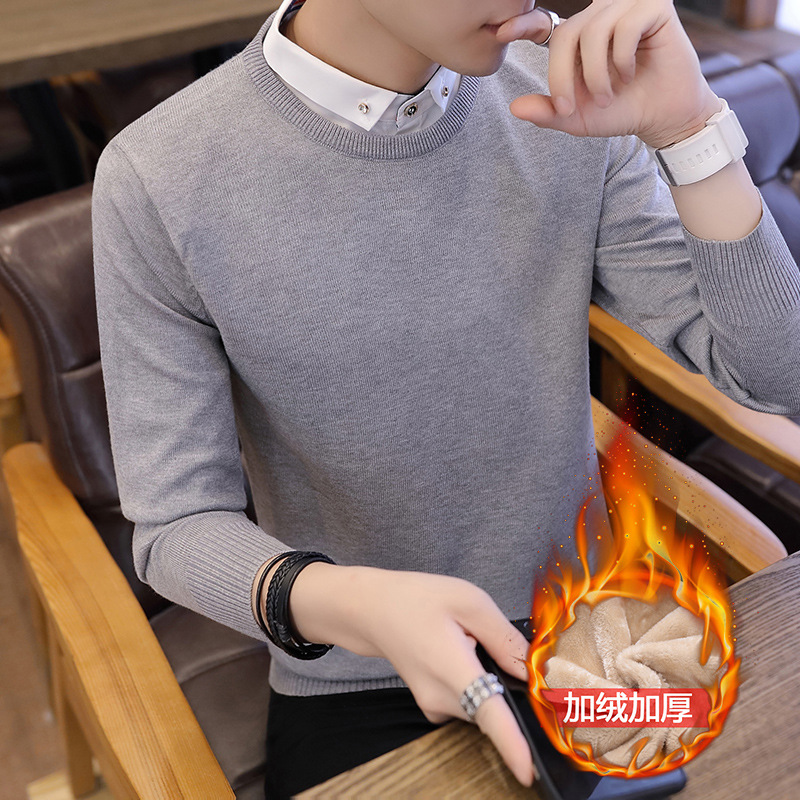 기모 두꺼운 스웨터 남자 겨울 2024 새로운 한국 스타일 가짜 투피스 내부 셔츠 칼라 Led 베이스 니트스토어 가기