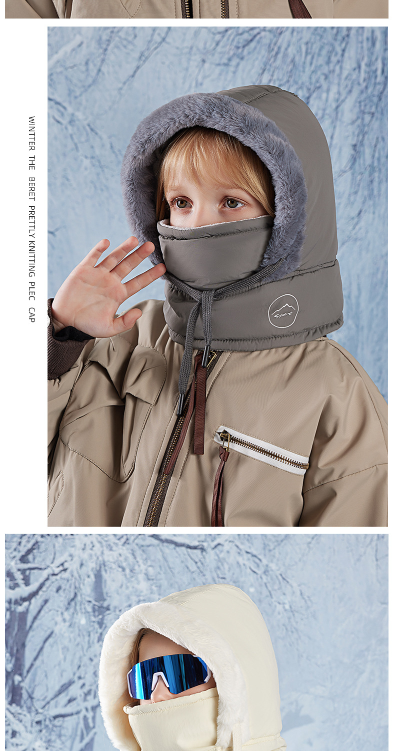 어린이 모자 겨울 기모 목 보호 스카프 마스크 남녀 아기 야외 따뜻한 레이 펑 모자 통합 풀오버 캡