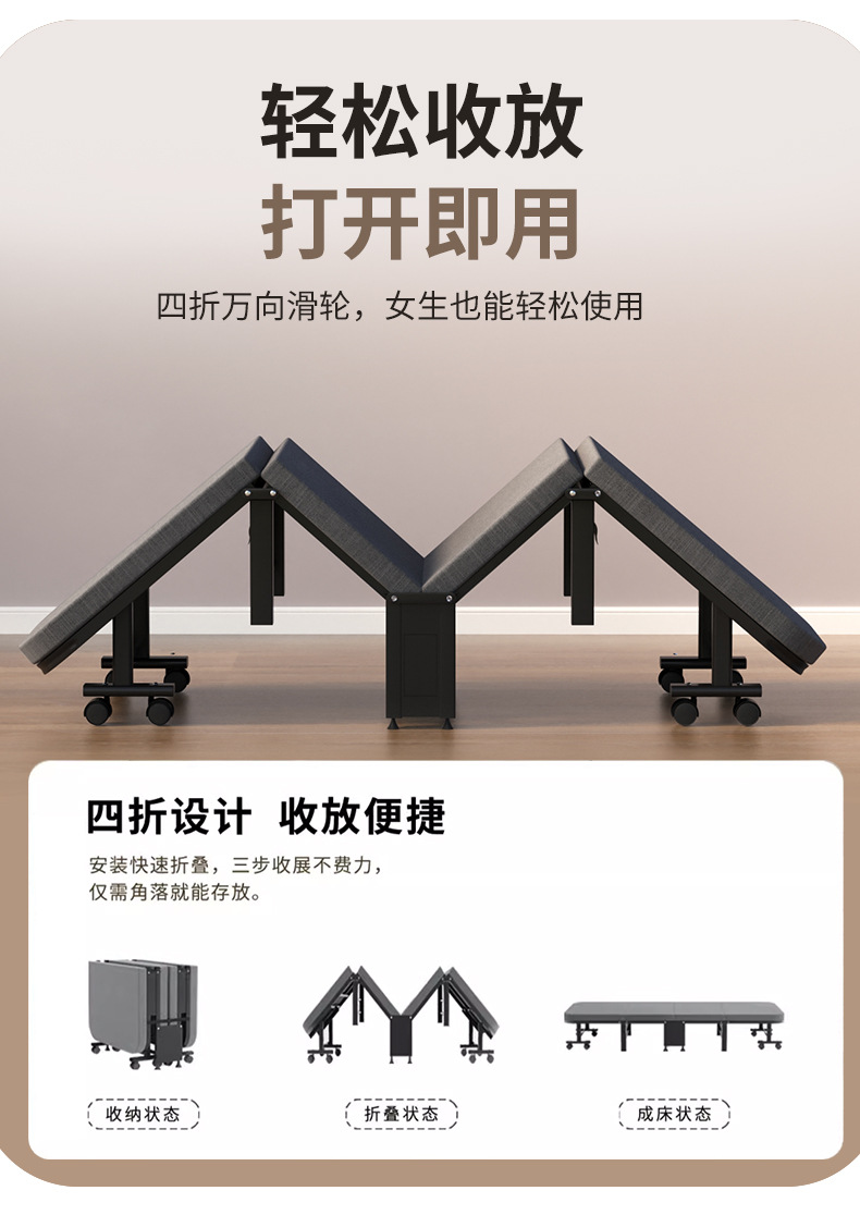점심 휴식 접이식 침대 싱글 점심 휴식 침대 4 배 접이식 침대 사무실 접는 침대 4 배 육군 침대 학생 소파스토어 가기