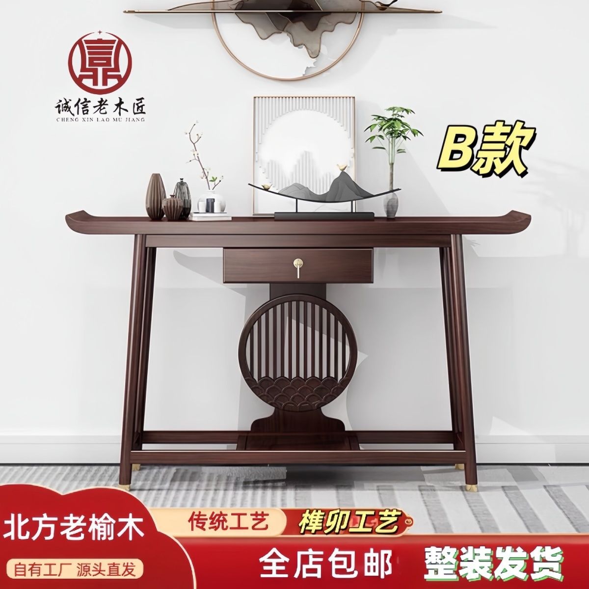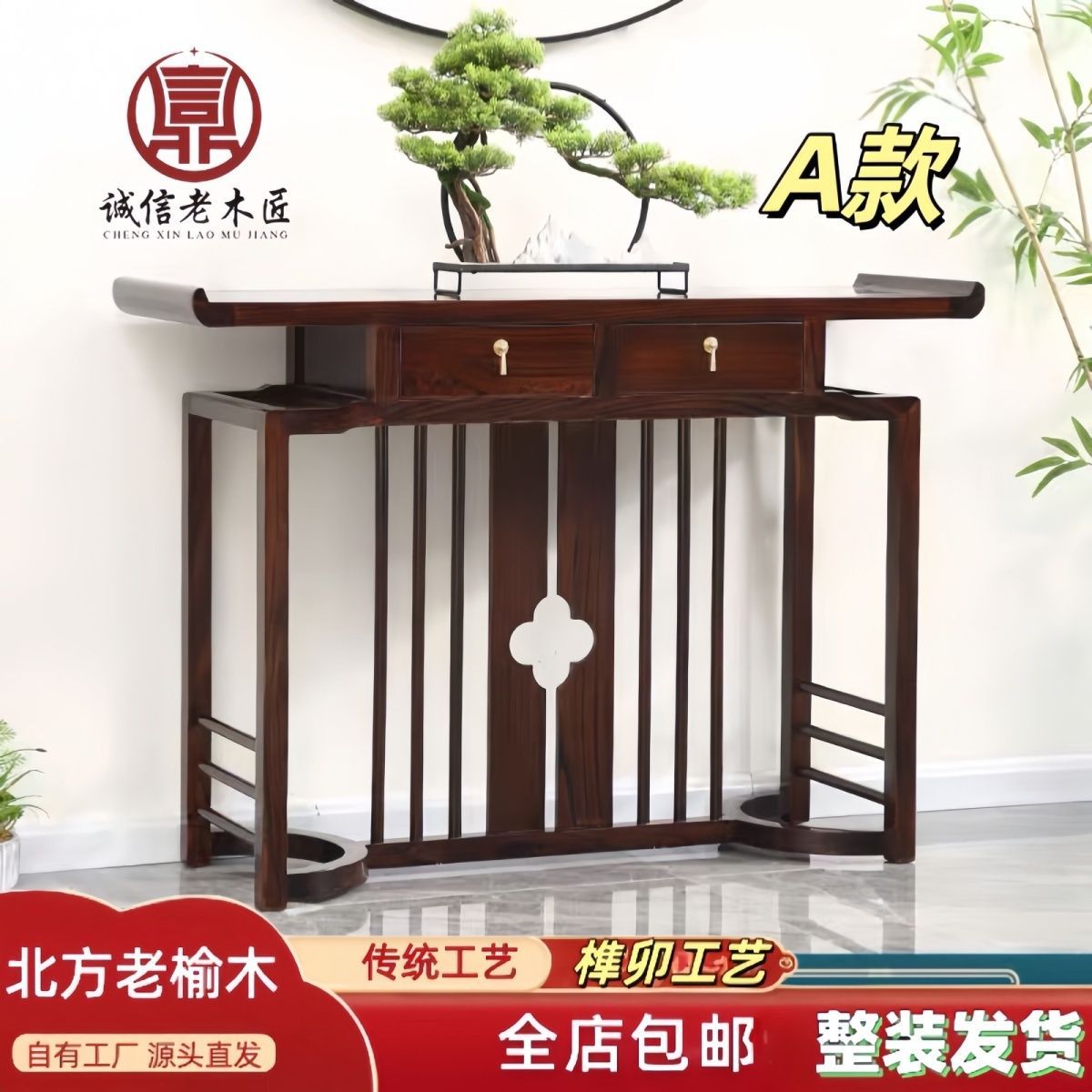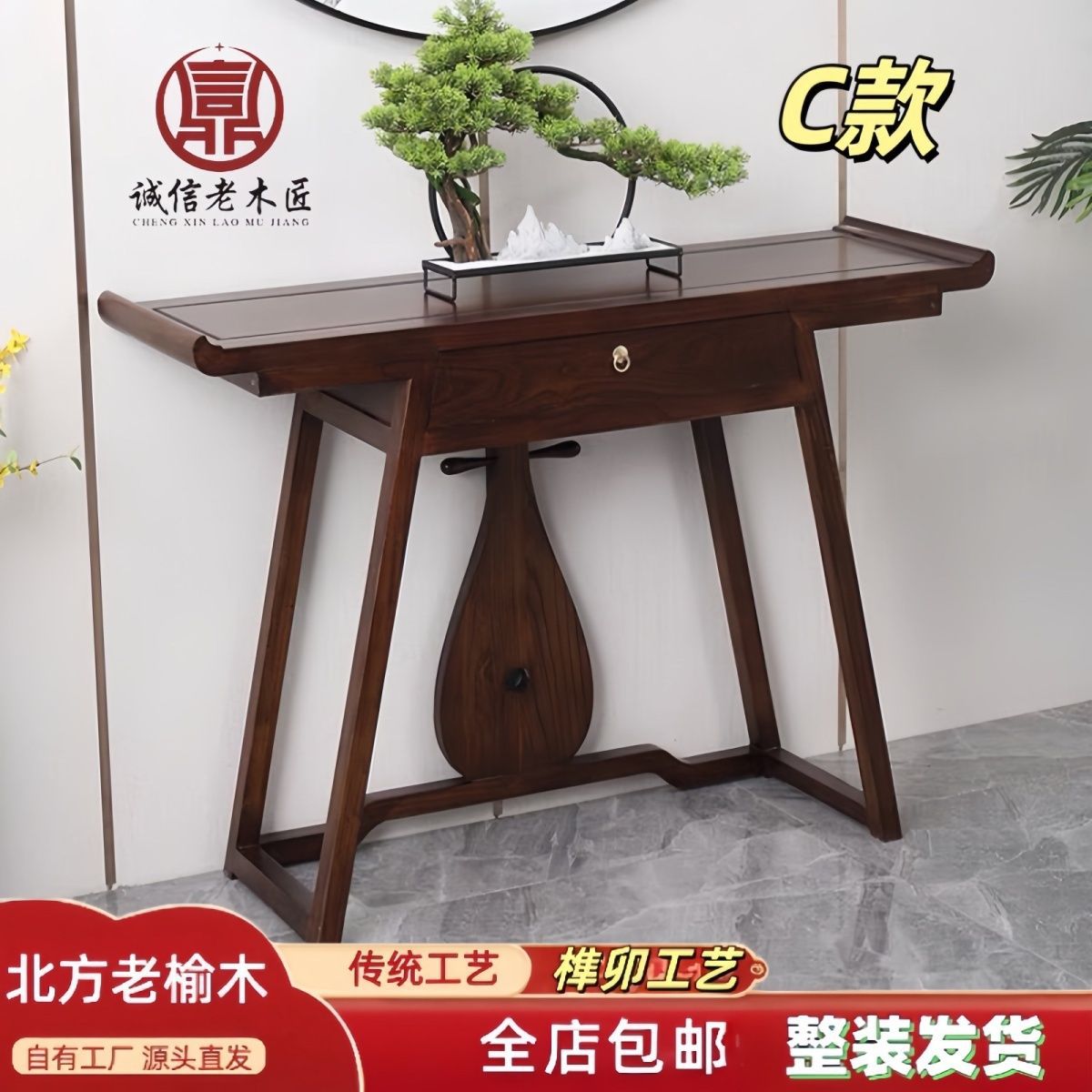 중국 스타일 입구 홀 간단한 입장 빛 럭셔리 솔리드 우드 선 데스크 거실 테이블 벽 느릅 나무 엔드 데스크
