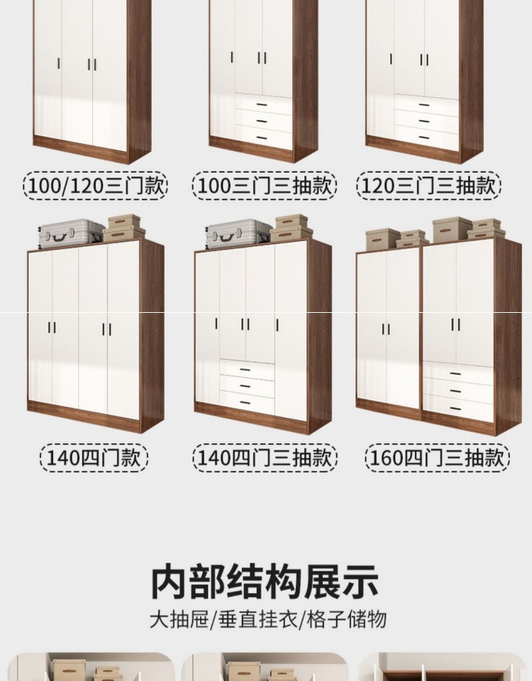 단단한 나무 옷장 새로운 2024 폭발 작은 아파트 작은 방 옷장 가정용 침실 보관 간단한 2 도어 옷장