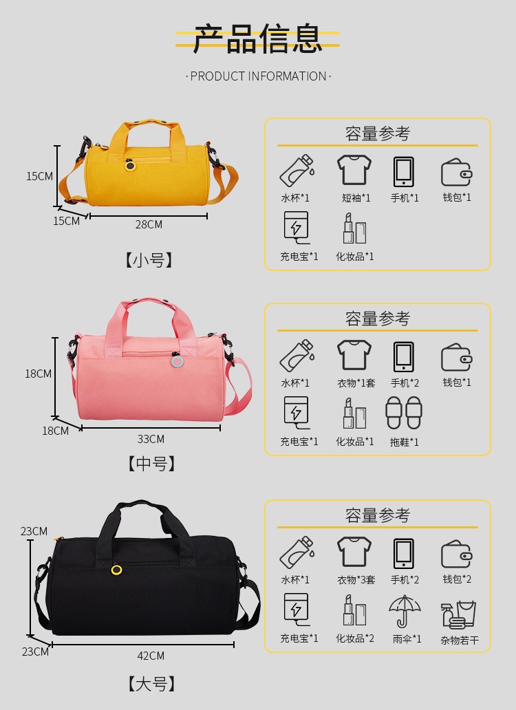 패셔너블한 원통형 스포츠 가방 여행용 케이스 대용량 핸드백 크로스백 패셔너블한 캐주얼 여행 가방 기념품 로고스토어 가기
