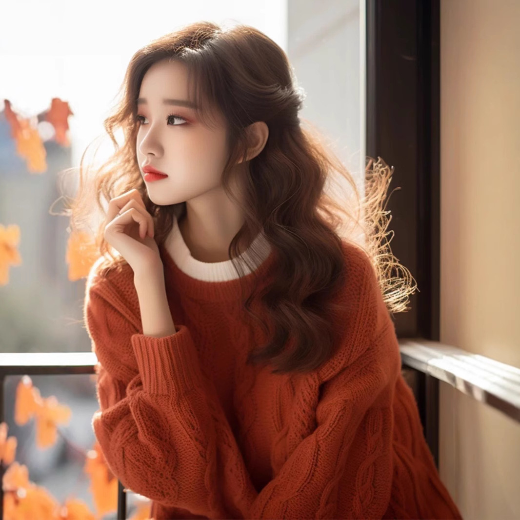 올해 인기있는 아름다운 오렌지 라운드 넥 스웨터 여성의 가을과 겨울 외부 작은 향기로운 바람을 입고 느슨한 니트 재킷