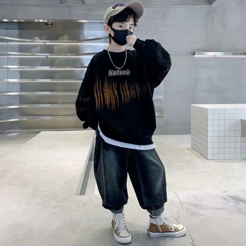 소년 아동복 봄과 가을 스웨터 소년 2024 새로운 대형 어린이 루피 잘 생긴 외국 가을 옷 아동복 조수스토어 가기