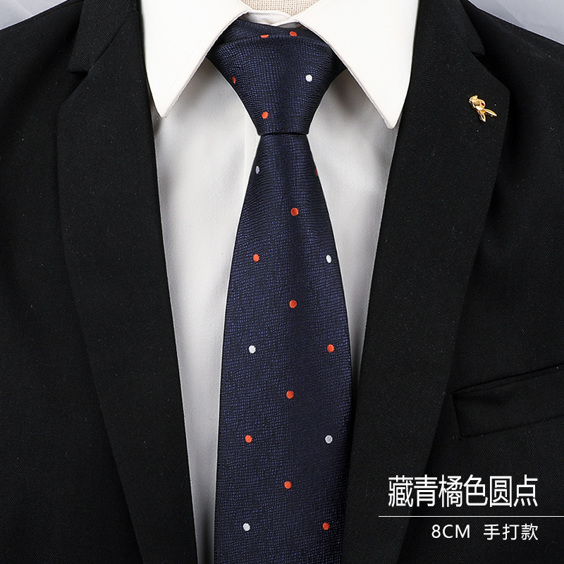 • 8cm - 네이비 블루 오렌지 폴카 도트 핸드 프린트