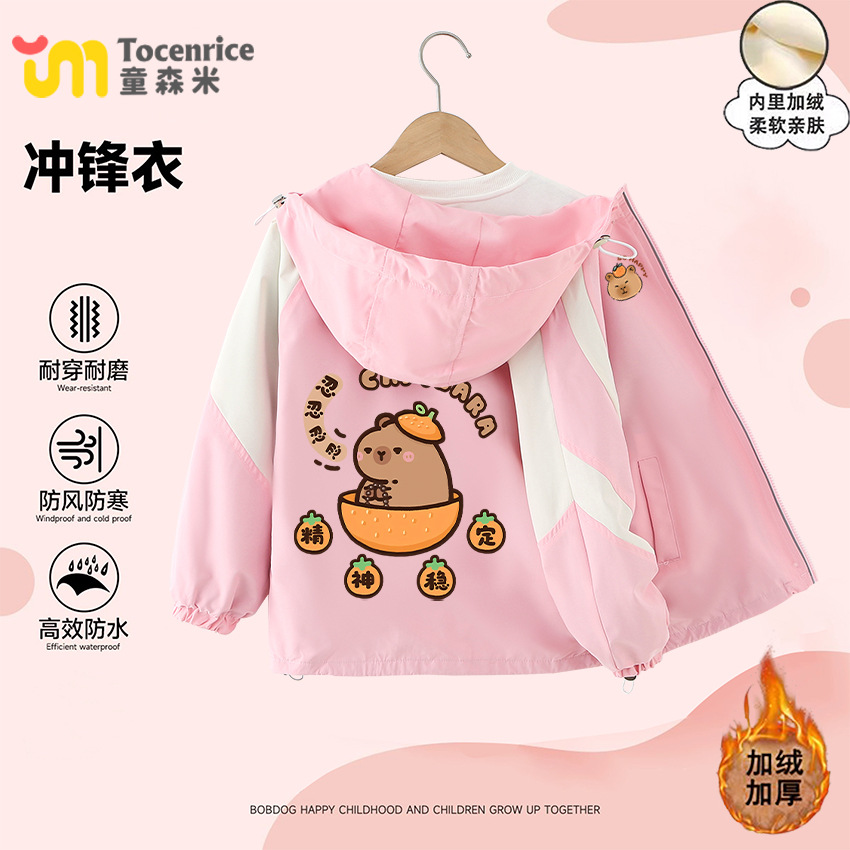 카피 발라 카피 바라 소녀 가을 겨울 코트 2024 새로운 한국 스타일 어린이 후드 재킷 얇은 트렌디 소박한 옷스토어 가기
