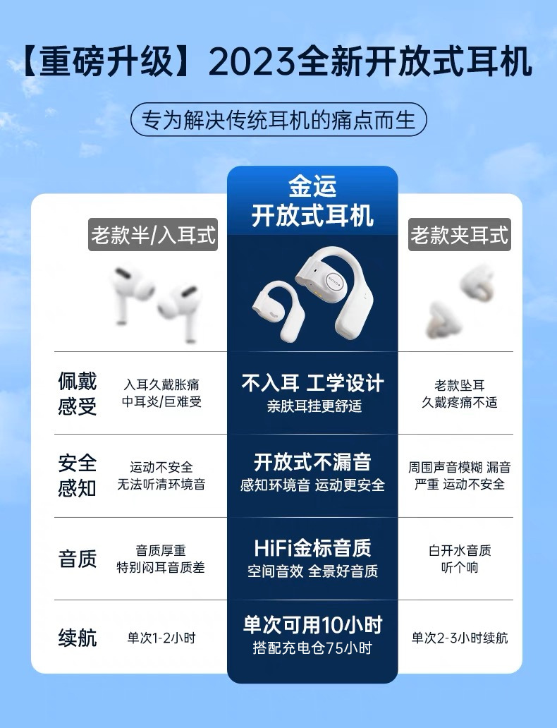 블루투스 헤드셋 무선 귀 장착형 공기 골전도 비인이어 개방형 스포츠 러닝 스페셜 2024 새 모델스토어 가기