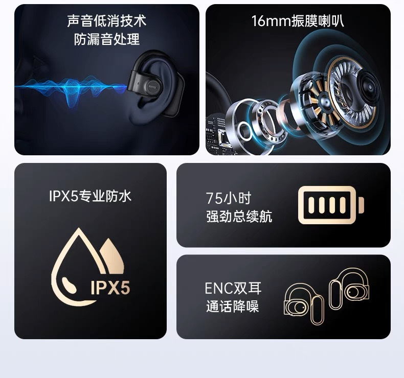 블루투스 헤드셋 무선 귀 장착형 공기 골전도 비인이어 개방형 스포츠 러닝 스페셜 2024 새 모델