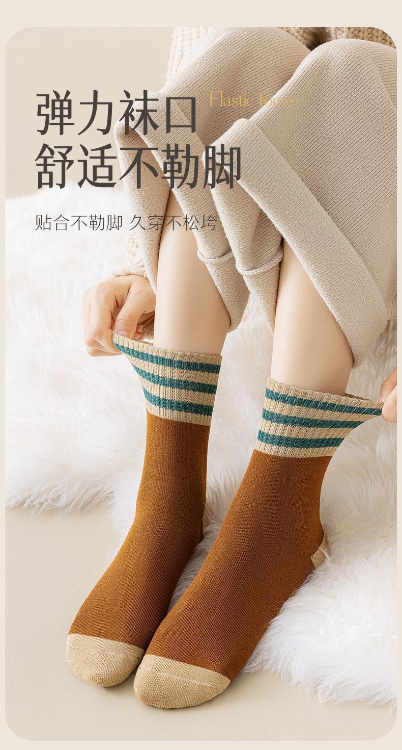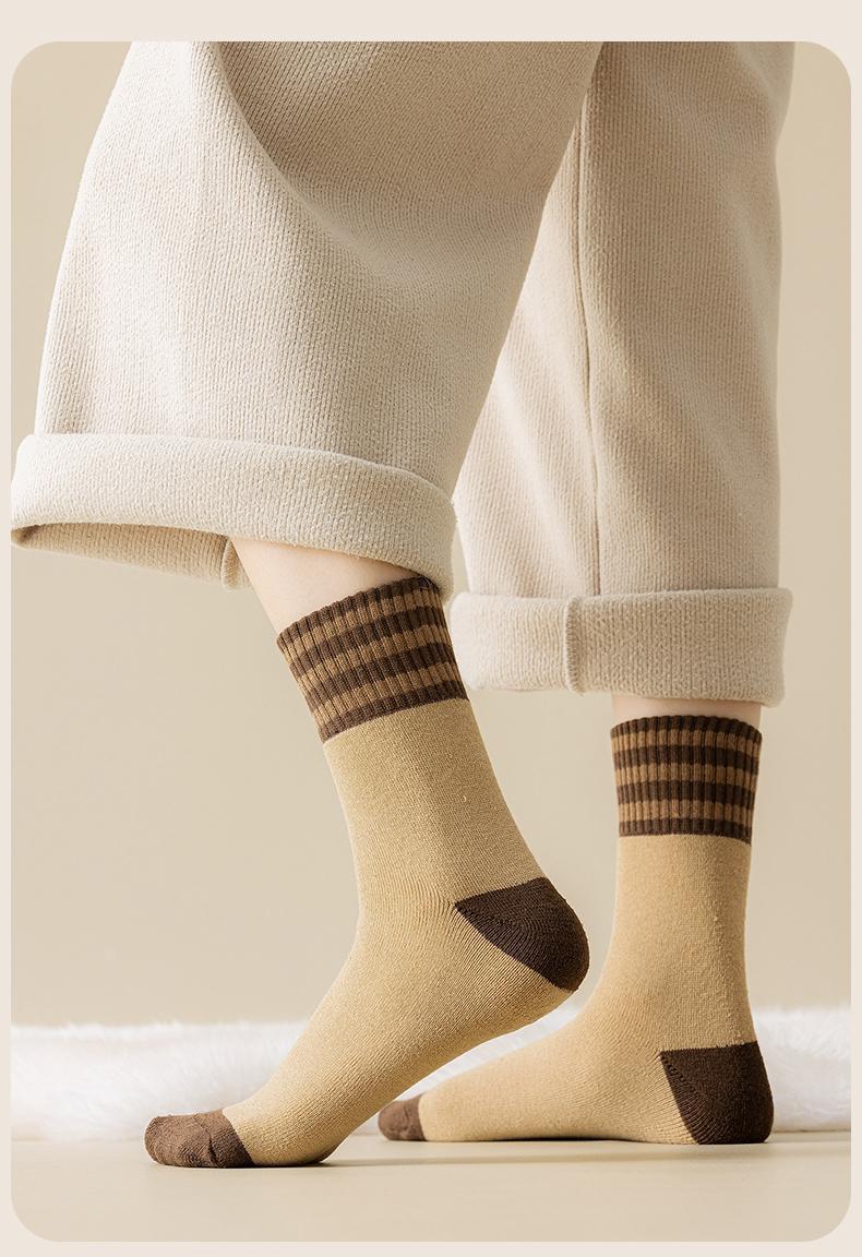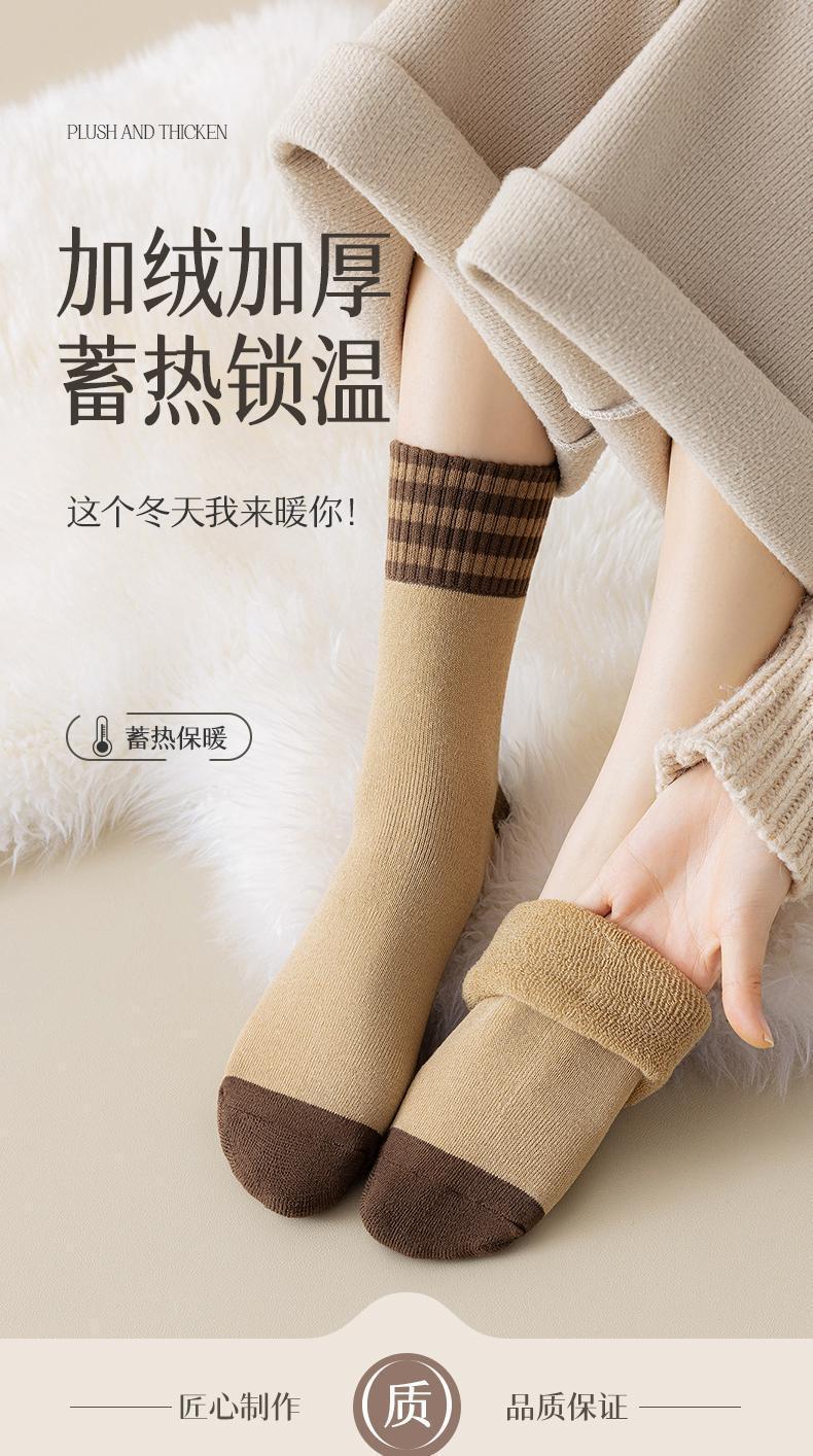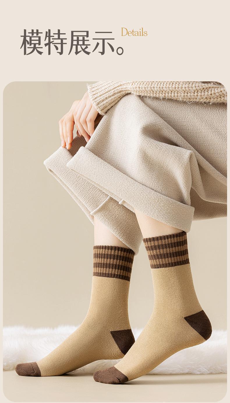일본 빈티지 기모 트릴 양말 여성 중간 길이 양말 Maillard 가을과 겨울 두꺼운 줄무늬 양말 따뜻한 바느질 스타킹스토어 가기