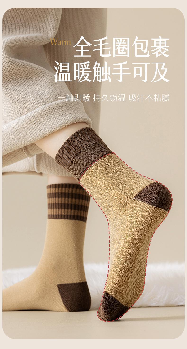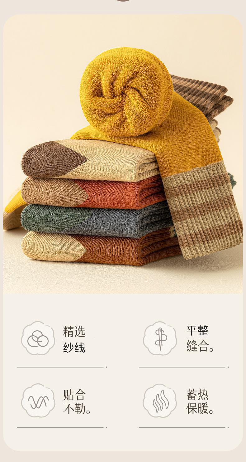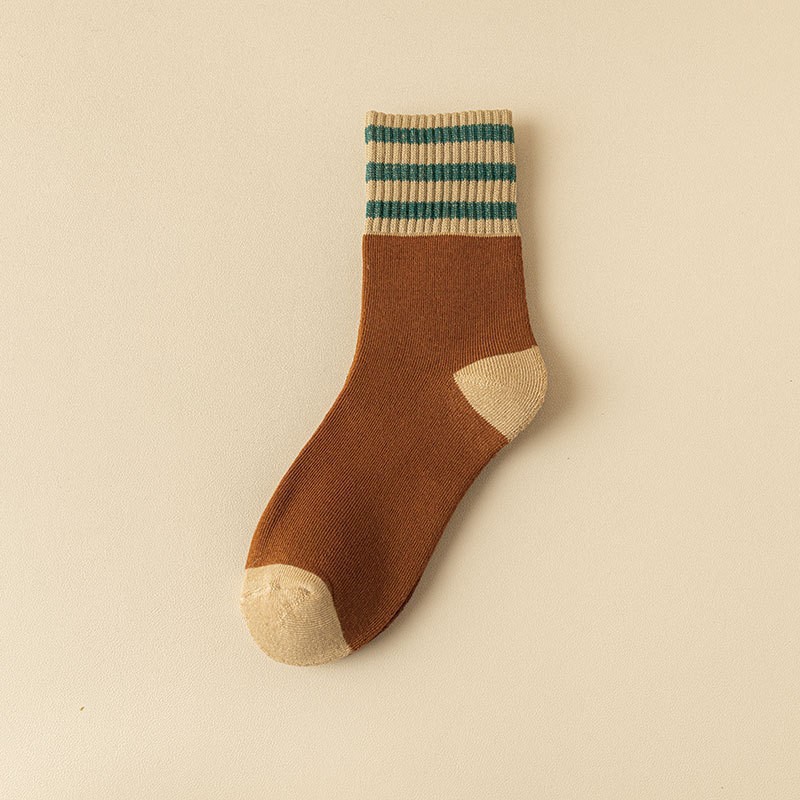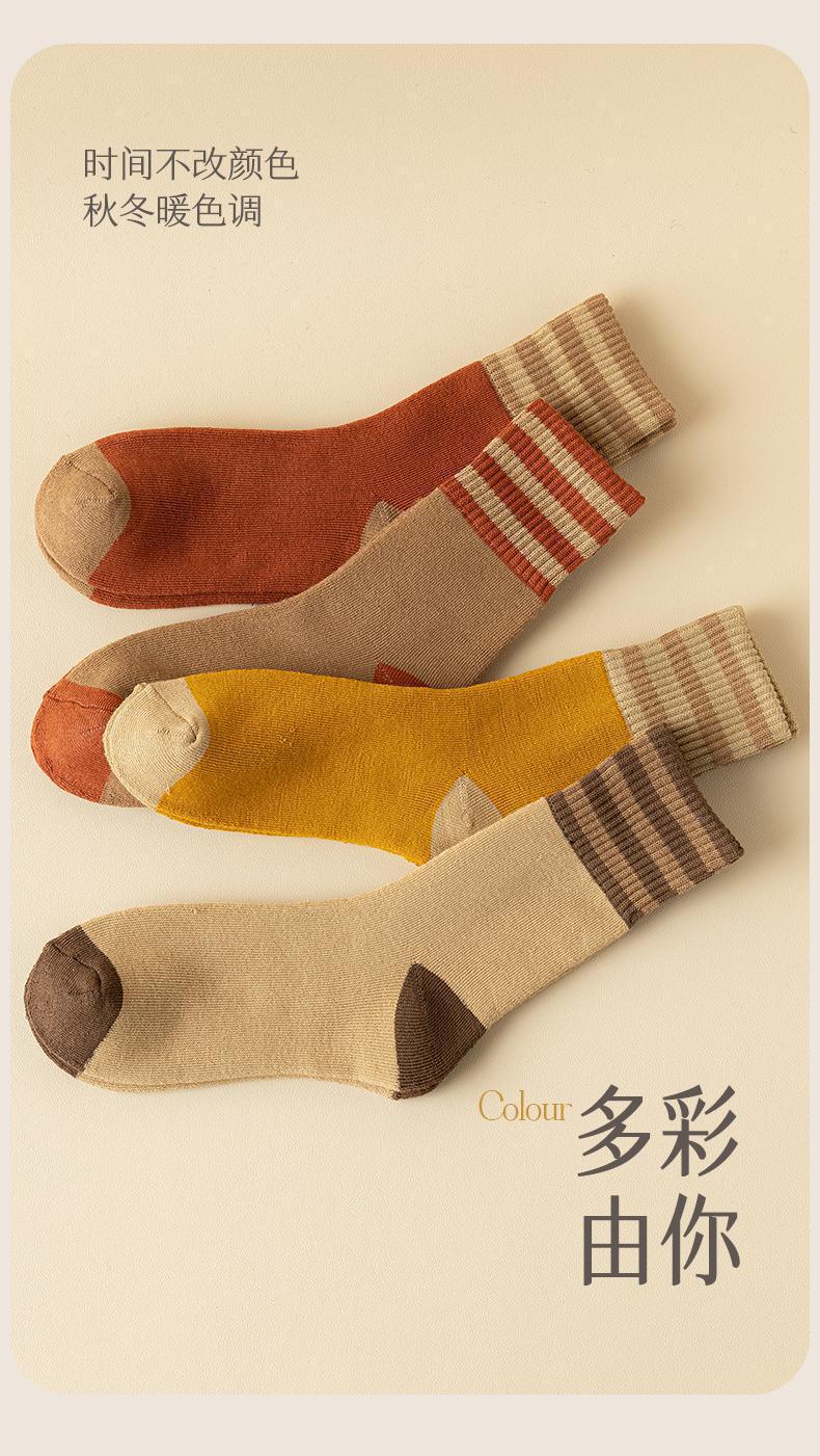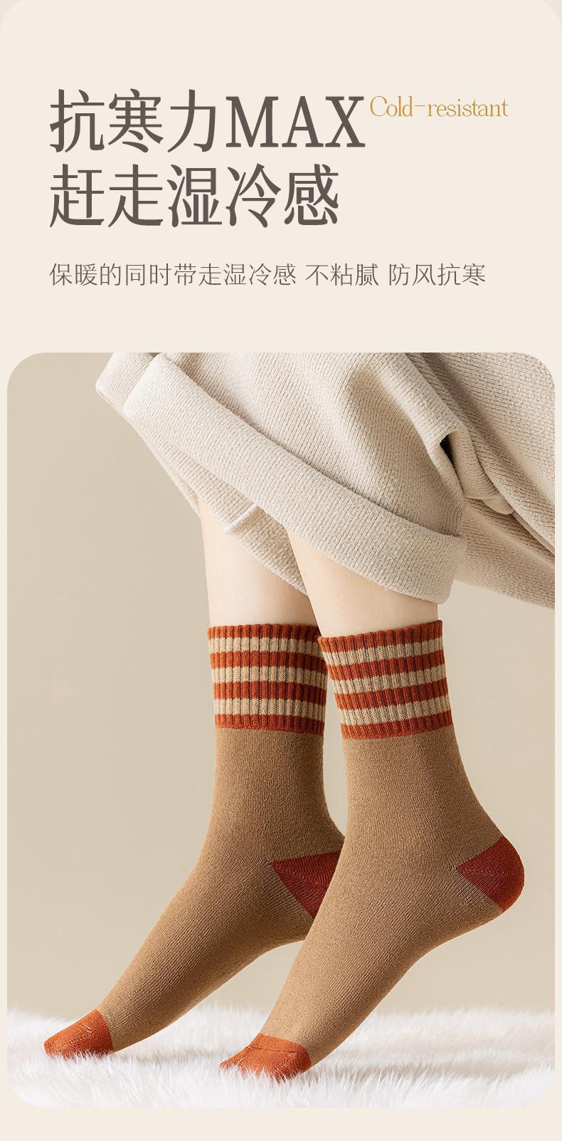 일본 빈티지 기모 트릴 양말 여성 중간 길이 양말 Maillard 가을과 겨울 두꺼운 줄무늬 양말 따뜻한 바느질 스타킹스토어 가기