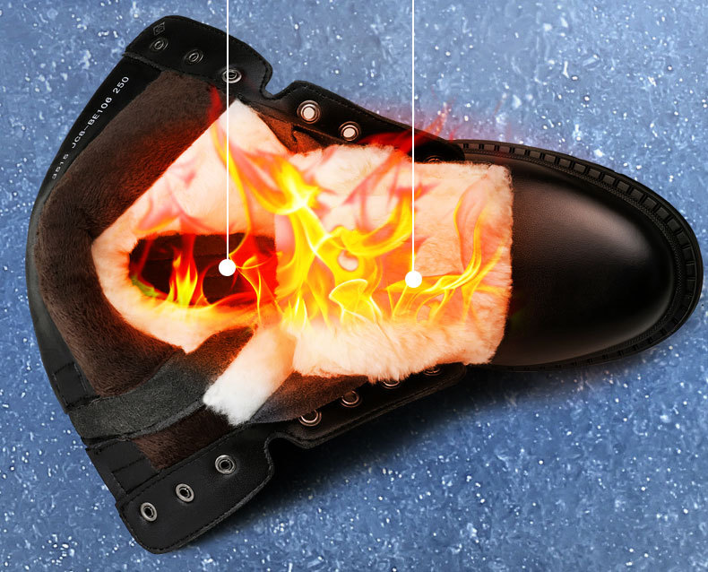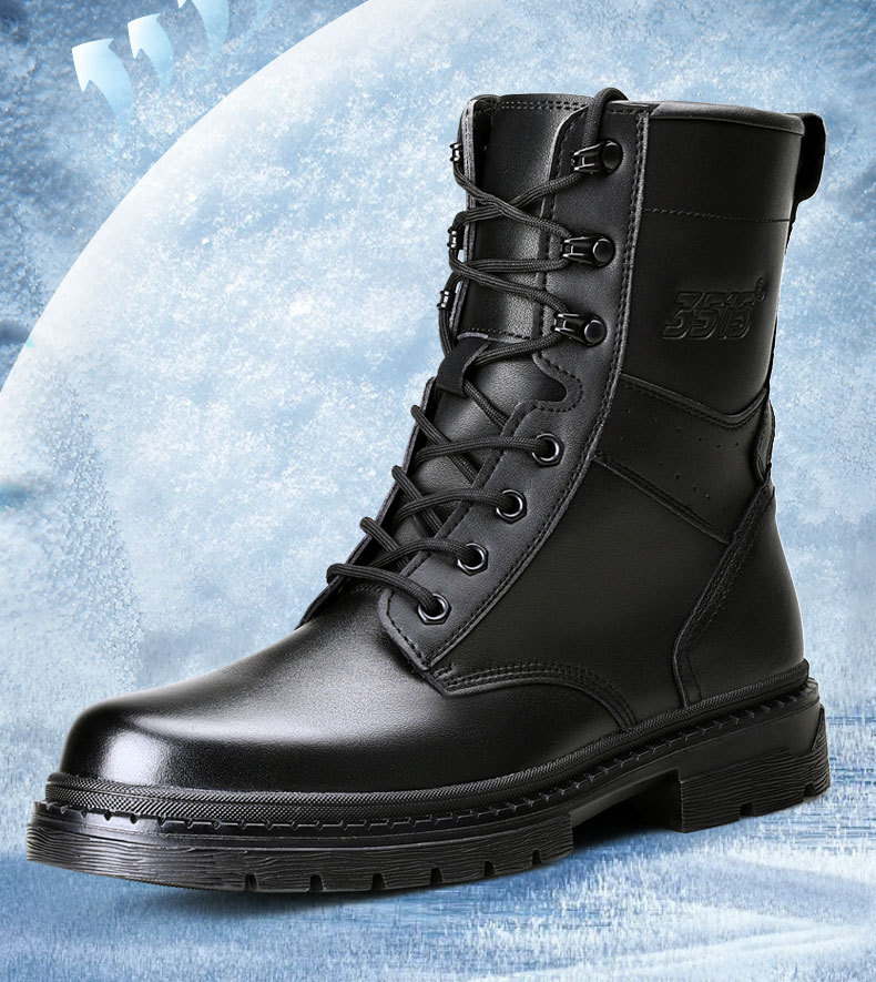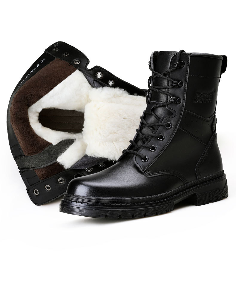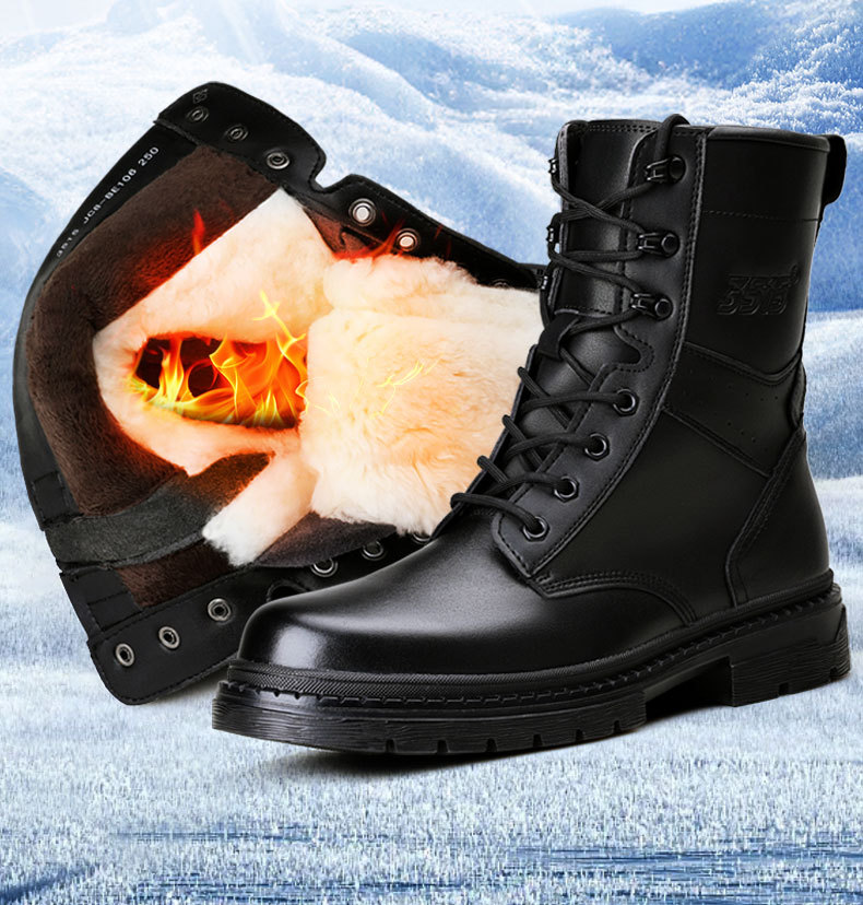 Jihua 3515 겨울 기모 두꺼운 양모 부츠 정품 가죽 남성용 코튼 가죽 신발 야외 작업복 따뜻한 스노우 부츠