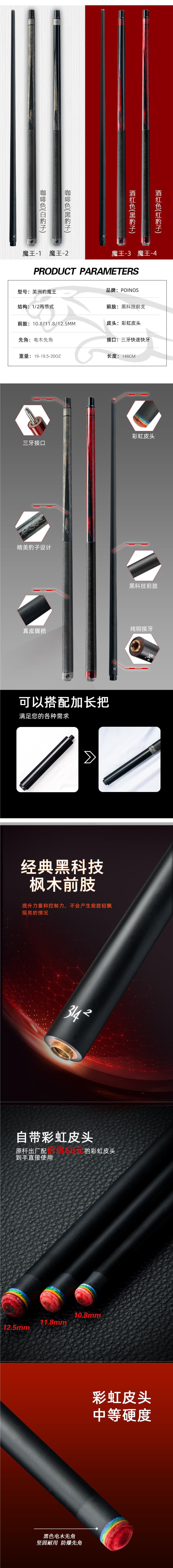 POINOS 재규어 악마 블랙 기술 풀 클럽 작은 머리 미국 블랙 8 당구 큰 머리 중국 블랙 89 공스토어 가기