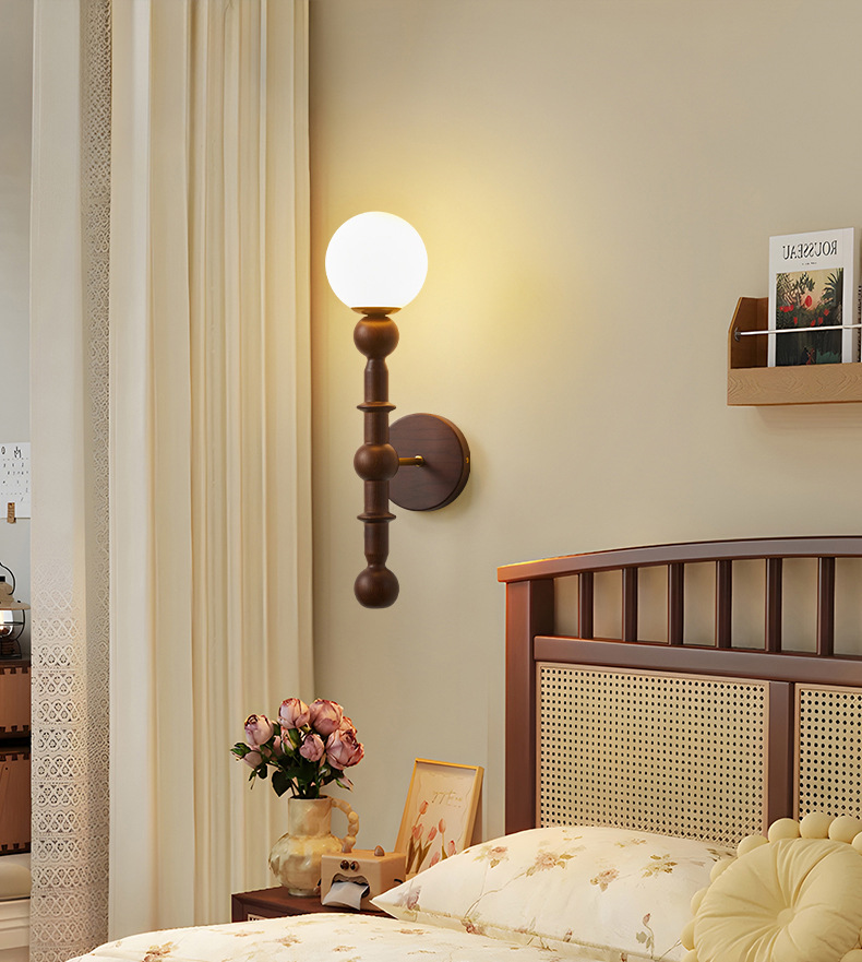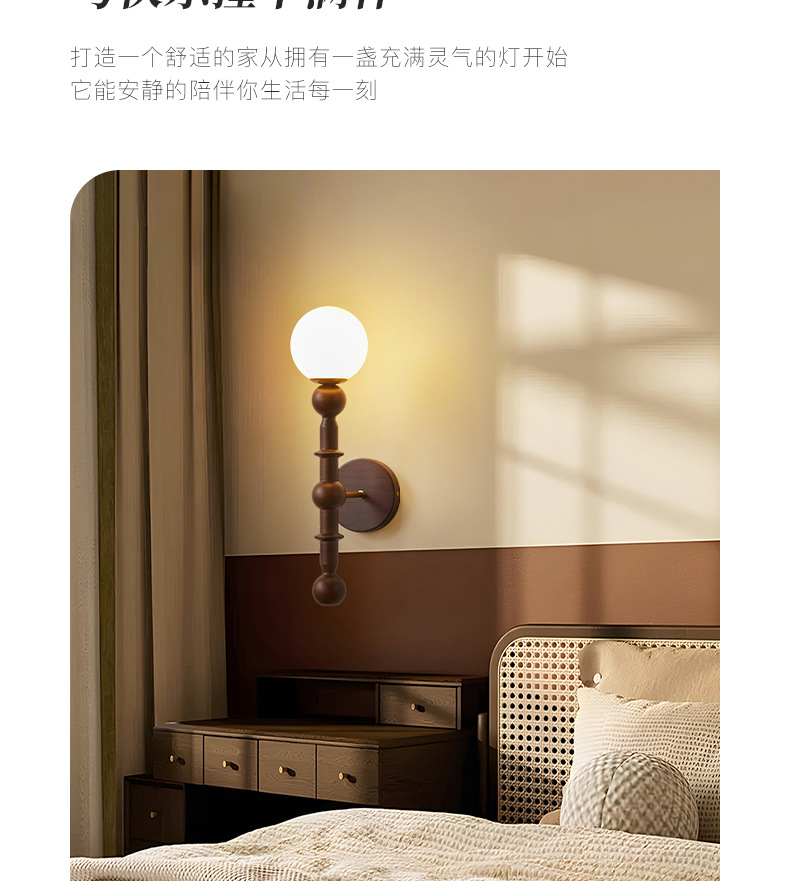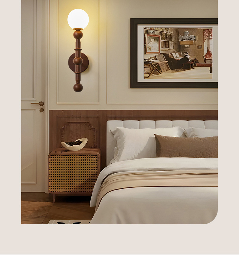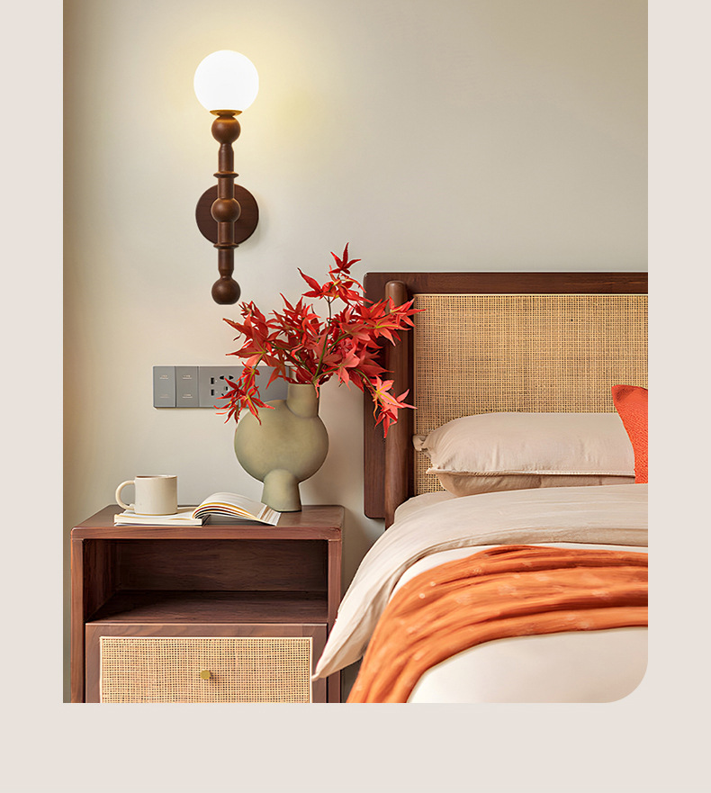 빈티지 벽 램프 침실 침실 램프 침묵 스타일 중간 일본 스타일 호두 재 나무 배경 벽 램프스토어 가기