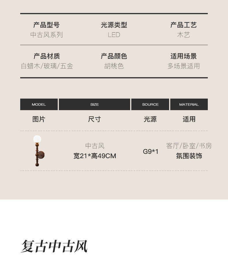 • 중세 스타일 벽 램프 12*23cm-백색광